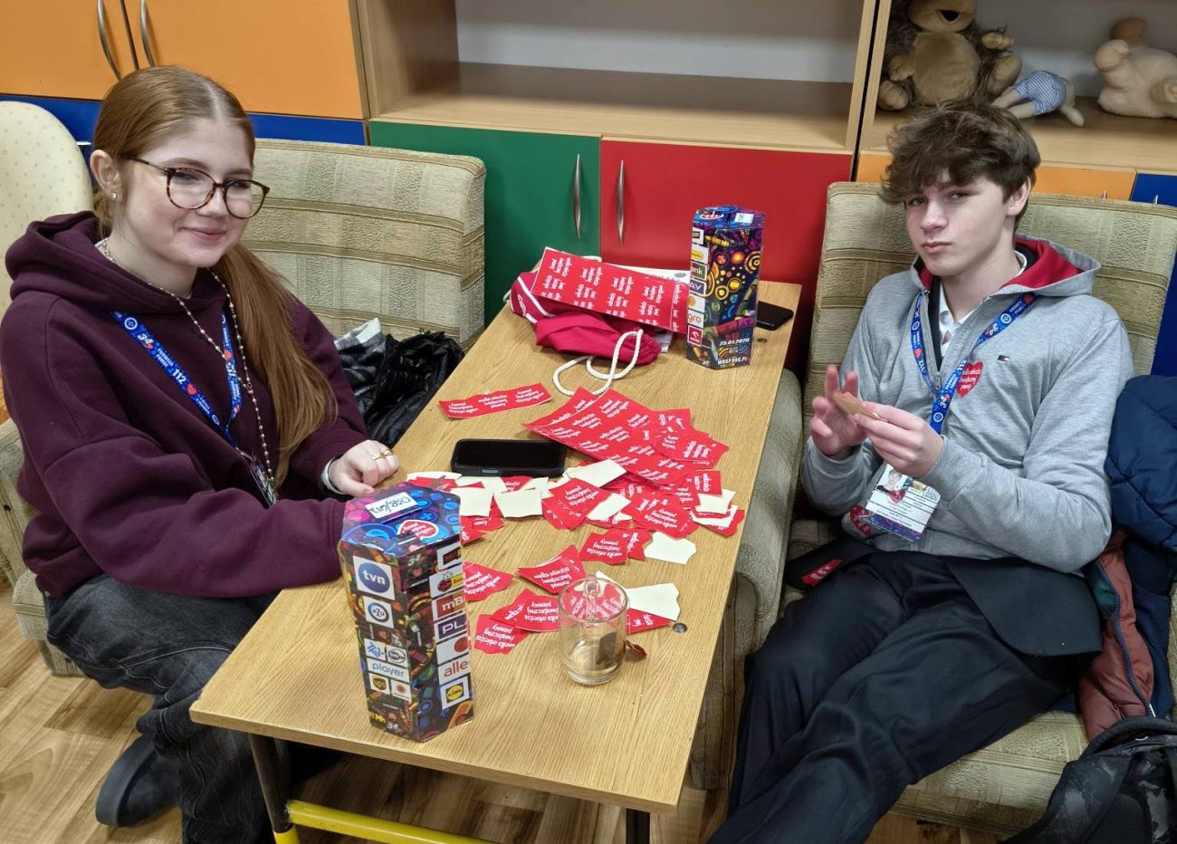 Dziękujemy także Alince Popławskiej, Elizie Lańskiej, Edycie Krzemińskiej i Grażynie Abram za opiekę nad wolontariuszami w sztabie oraz Anecie Własiuk i Ewie Prokopiuk z Banku PKO BP SA za pomoc w liczeniu i segregacji pieniędzy.