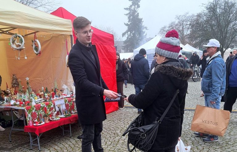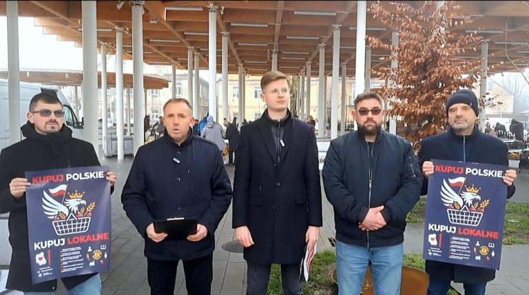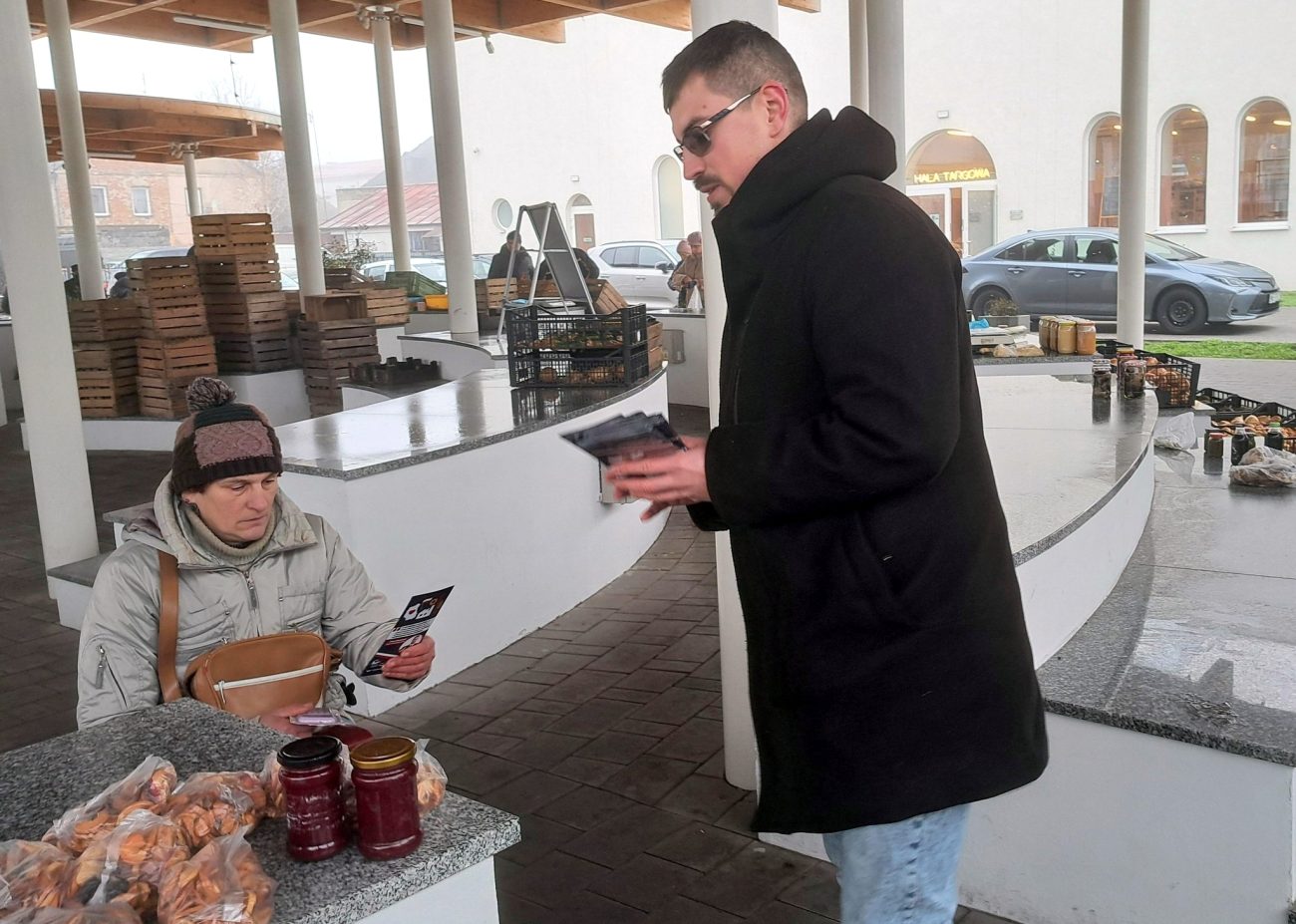 – Dzisiaj prowadzimy w naszym powiecie kampanię informacyjną, rozdając ulotki i zachęcając mieszkańców do świadomych zakupów – kontynuował Mateusz Olszewski. – Nie po to, by kogokolwiek pouczać, ale by ułatwić wybór. Nie mówimy: kupuj drożej. Mówimy: kupuj świadomie. Bo jeśli my nie będziemy wspierać własnych producentów, to nikt tego za nas nie zrobi. Kupowanie polskich produktów to realny wpływ, jaki każdy z nas ma na przyszłość kraju. Silna Polska nie zaczyna się tylko w Sejmie czy w Brukseli. Zaczyna się tu, przy sklepowej półce.