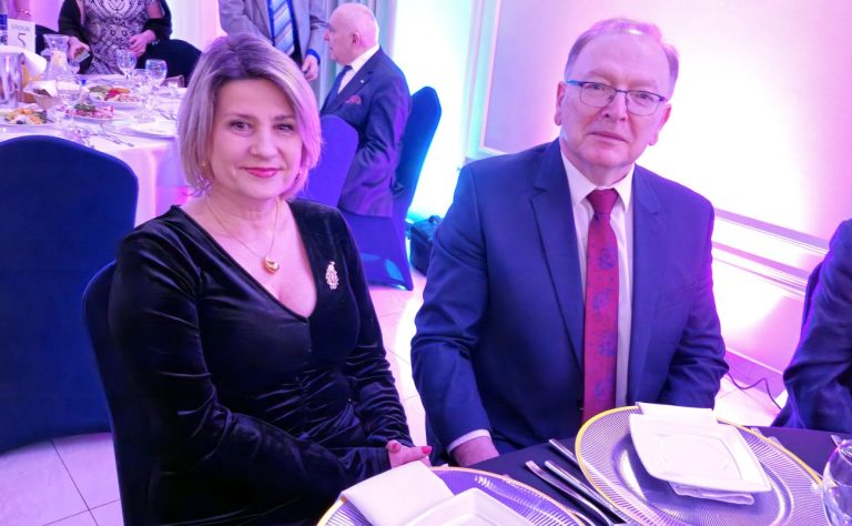 Następnie głos zabrał Stanisław Romanowski, który podkreślił wagę współpracy lokalnych organizacji. – W imieniu prezydenta miasta Michała Litwiniuka dziękuję za zaproszenia na wyjątkowy bal dwóch tak istotnych środowisk dla miasta Biała Podlaska, jak i całego regionu. Przekazuję od prezydenta pozdrowienia, a także fant na szczytną licytację – mówił naczelnik UM. – Składam podziękowania za tak wspaniałą działalność tych dwóch stowarzyszeń. Przypomnę tylko dwie z wielu inicjatyw: kwestę Koła Bialczan na odnowę zabytkowych nagrobków na bialskim cmentarzu oraz przekazanie przez klub Rotary samochodu dla bialskiego Miejskiego Ośrodka Pomocy Społecznej. Dzisiejszy bal jednoczy te dwa środowiska we wspólnym celu – pomocy tym, którzy jej szczególnie potrzebują. Życzę udanej zabawy do białego rana.
