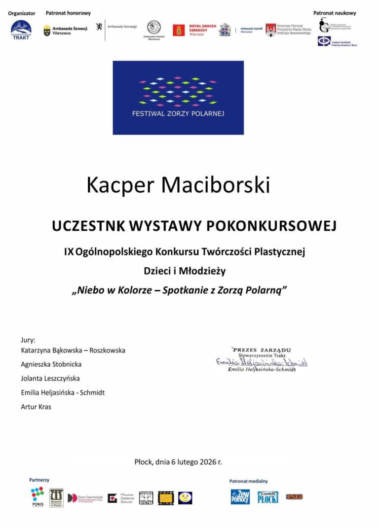 Sukcesem zakończył się udział reprezentantów Bialskiego Centrum Kultury w 9. Ogólnopolskim Konkursie Plastycznym „Niebo w kolorze – Spotkanie z zorzą polarną”. Wydarzenie to jest kluczowym elementem 14. Festiwalu Zorzy Polarnej, organizowanego przez Stowarzyszenie TRAKT w Płocku.