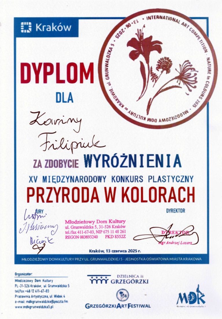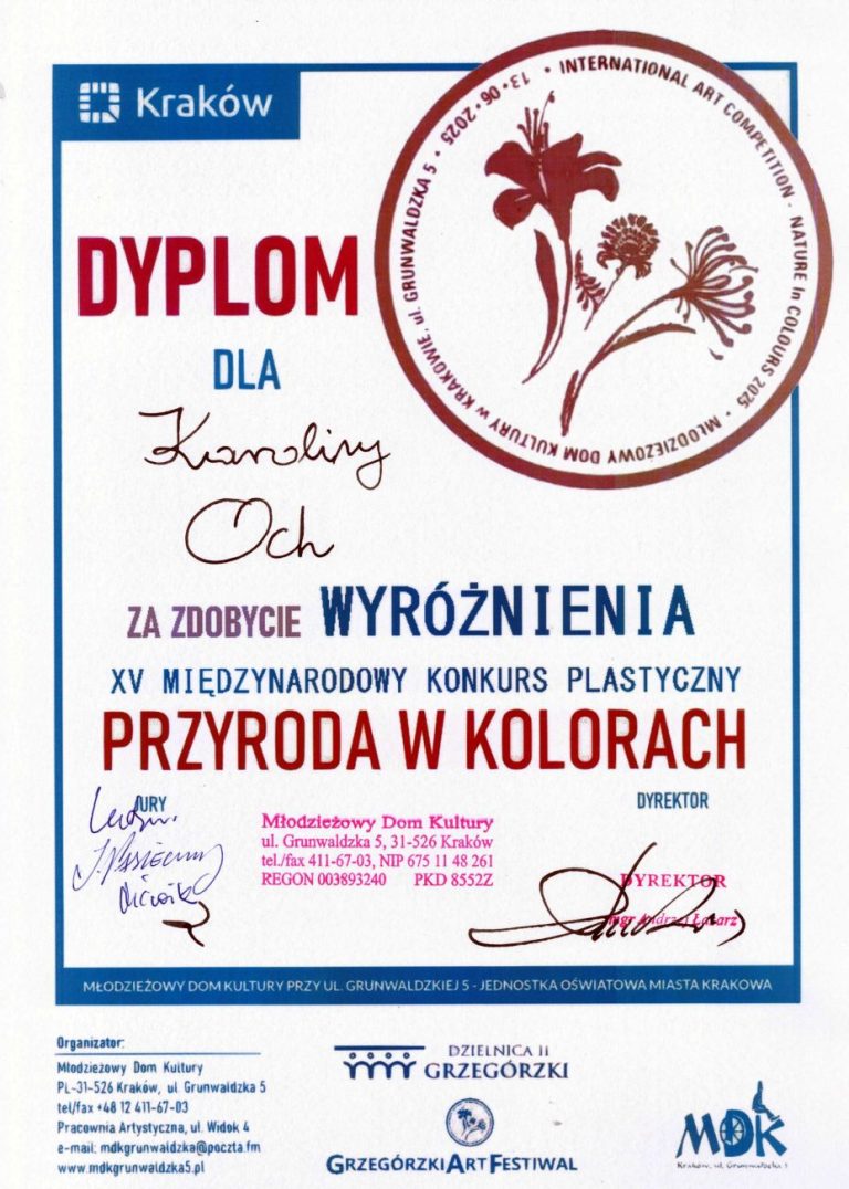 • wyróżnienie otrzymała Karolina Och (10 lat),