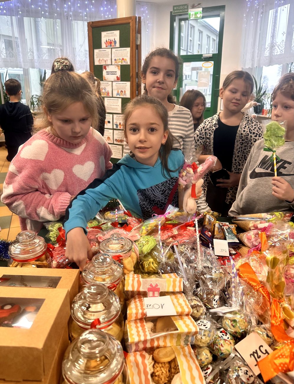 Na organizowanym przez Szkolne Koło Wolontariatu Pomocna Dłoń kiermaszu znalazło się mnóstwo wspaniałych wypieków, które przygotowali wolontariusze oraz rodzice uczniów. Na stołach pojawiły się pyszne pierniki, ciasta, babeczki, ciasteczka, bezowe lizaki oraz wiele innych słodkości, które cieszyły się ogromnym zainteresowaniem.