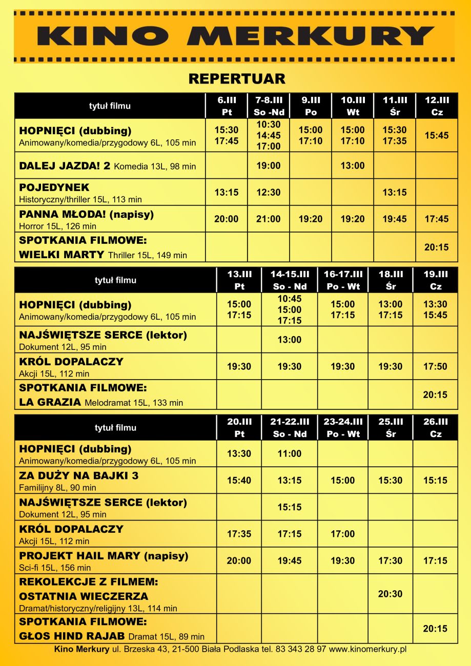 A oto cały repertuar na najbliższe dni: