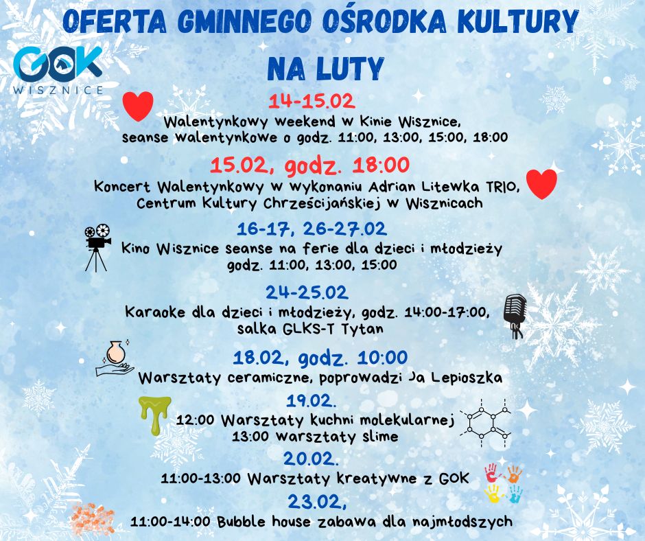 • Warsztaty kreatywne (piątek 20 lutego, w godz. 11-13): autorskie zajęcia przygotowane przez pracowników GOK.