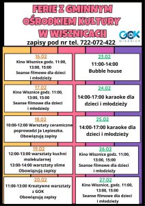 Ferie to czas odpoczynku, ale też doskonała okazja do rozwijania pasji i poznawania nowych przyjaciół. Organizatorzy z Wisznic zadbali o to, by oferta była różnorodna i dostosowana do różnych zainteresowań. Co ważne – wstęp na wszystkie zajęcia jest całkowicie bezpłatny.