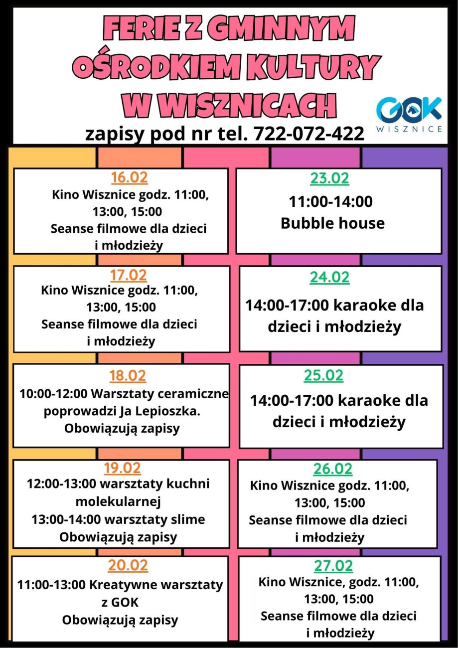 Zima wcale nie musi być szara i nudna. Gminny Ośrodek Kultury i Oświaty w Wisznicach przygotował bogaty program na czas zbliżających się wielkimi krokami ferii, który rozgrzeje wyobraźnię najmłodszych mieszkańców. Na dzieci i młodzież z terenu gminy czekają darmowe warsztaty, seanse filmowe oraz nietypowe atrakcje, takie jak bubble house czy slime.