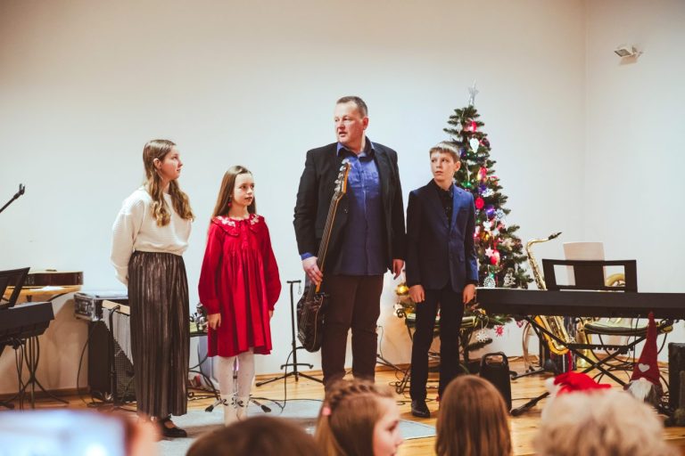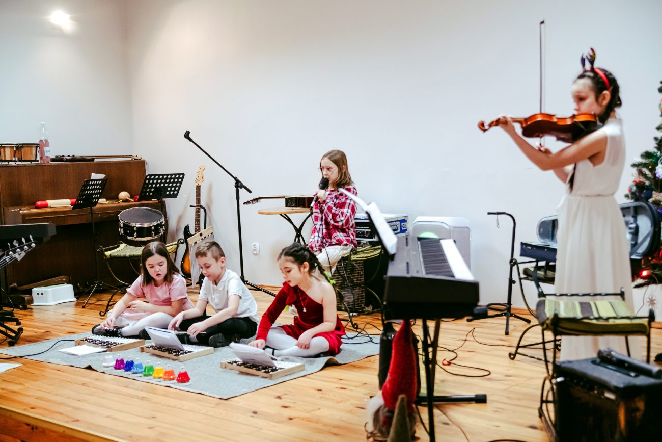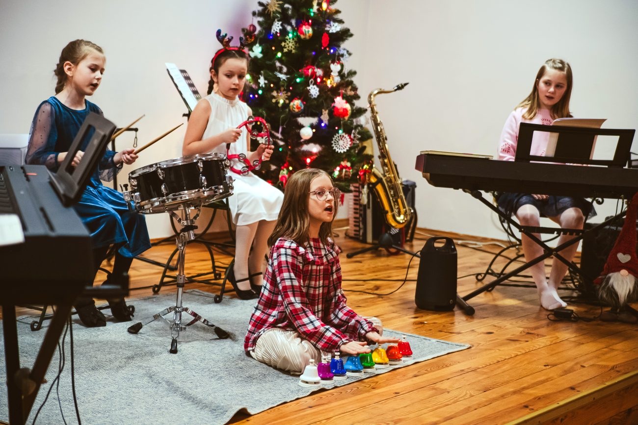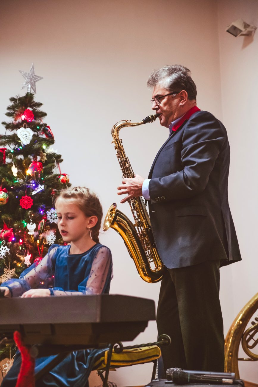 Na scenie wystąpiło ponad dwadzieścia osób – 12 dzieci w wieku od 6 do 12 lat, wspieranych przez rodziców i dziadków, tworzących zróżnicowane układy wykonawcze: duety dziecko-rodzic, wnuczka z dziadkiem, tria rodzinne, a także kwartety i większe zespoły, w których spotykały się różne pokolenia i doświadczenia muzyczne. Obok solowych prezentacji pojawiały się wspólne wykonania, w których role nie były sztywno przypisane, a muzyka stawała się przestrzenią dialogu i współobecności.