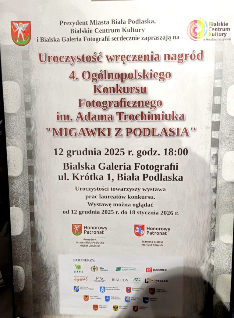 W piątek 12 grudnia podsumowana została czwarta edycja Ogólnopolskiego Konkursu Fotograficznego im. Adama Trochimiuka „Migawki z Podlasia”. Uroczystość odbyła się w sali wystawienniczej Bialskiej Galerii Fotografii przy ulicy Krótkiej 1 Bialskiego Centrum Kultury im. Bogusława Kaczyńskiego.