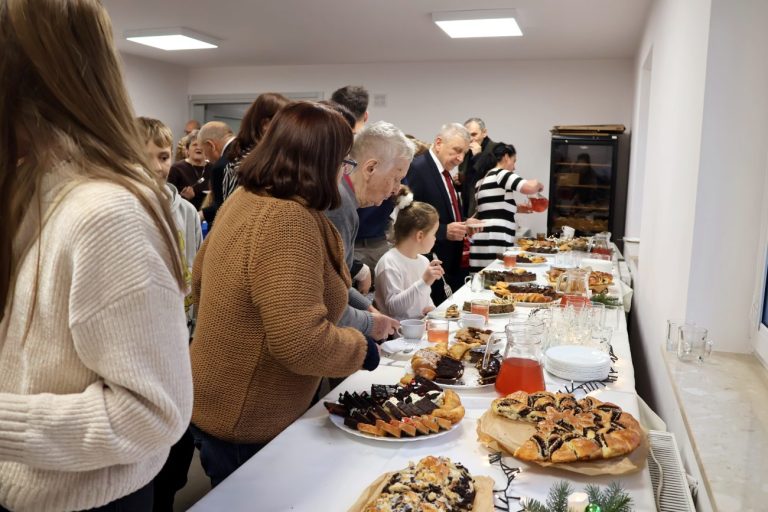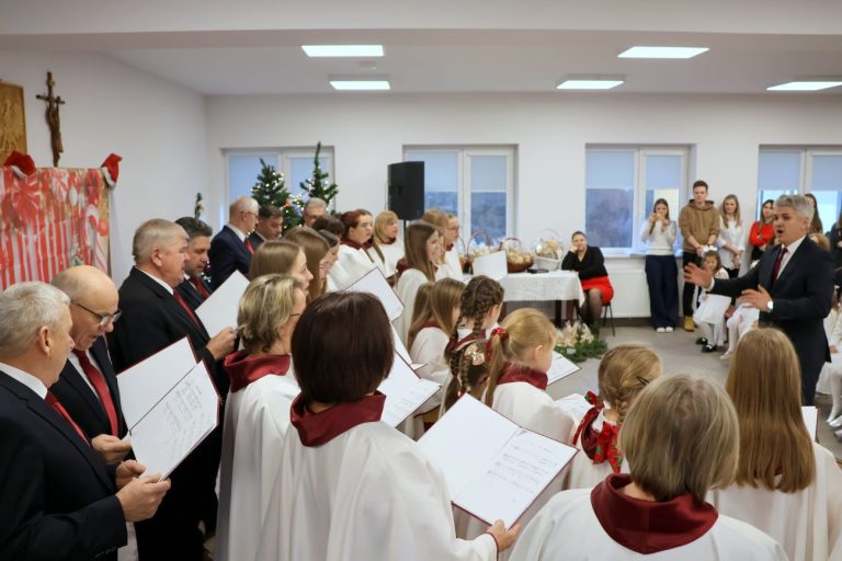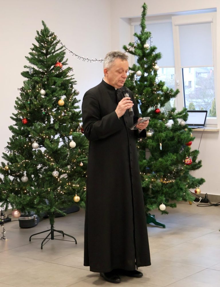 O godzinie 14 rozpoczęło się spotkanie wigilijne. Wójt gminy Jerzy Czyżewski powitał wszystkich przybyłych na to wyjątkowe wydarzenie. Następnie proboszcz parafii w Łomazach ksiądz Adam Kamecki odczytał fragment Ewangelii, po czym wspólnie zaśpiewano kolędy, przy gitarowym akompaniamencie Pawła Tokarskiego.