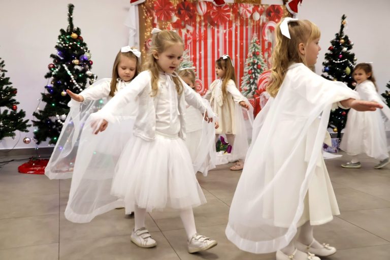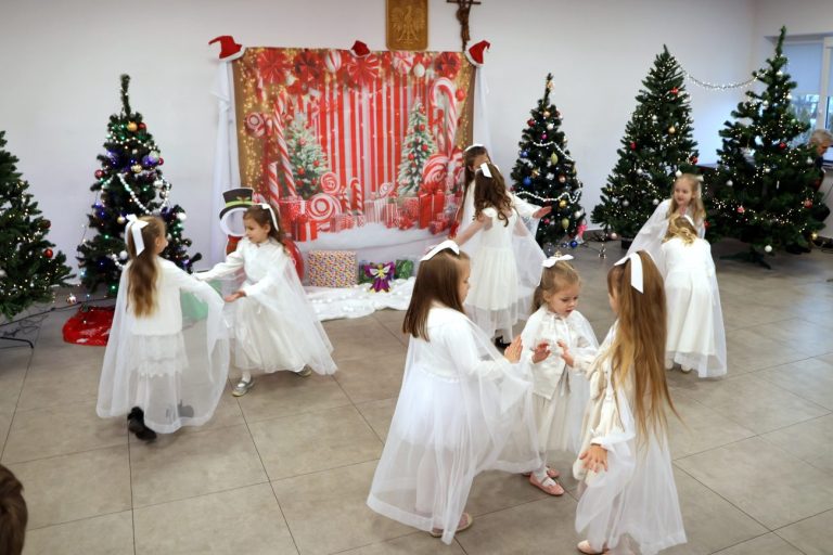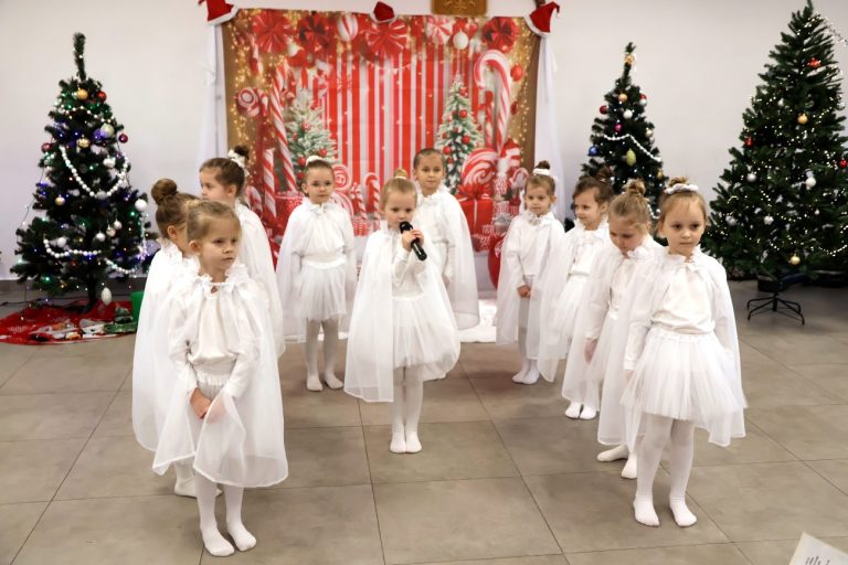 Część artystyczna rozpoczęła się od występu pt. „Taniec Aniołków”, w którym zaprezentowały się dziewczynki z grupy przedszkolnej 4-6-latków, przygotowane pod kierunkiem Moniki Besaraby i Ewy Dekiert. Następnie wystąpił szkolny zespół ludowy Koralinki, nad którym opiekę sprawuję Agnieszka Panasiuk. Kolejny punkt programu stanowił występ grupy 5-6-latków. Dzieci przygotowane przez Ewę Karpowicz i Agnieszkę Garbatiuk wykonały taniec „Kołysanka dla Jezuska”. Odbył się również koncert scholi i chóru z parafii pw. św. Apostołów Piotra i Pawła w Łomazach, prezentujących piękne kolędy pod kierunkiem Pawła Tokarskiego.