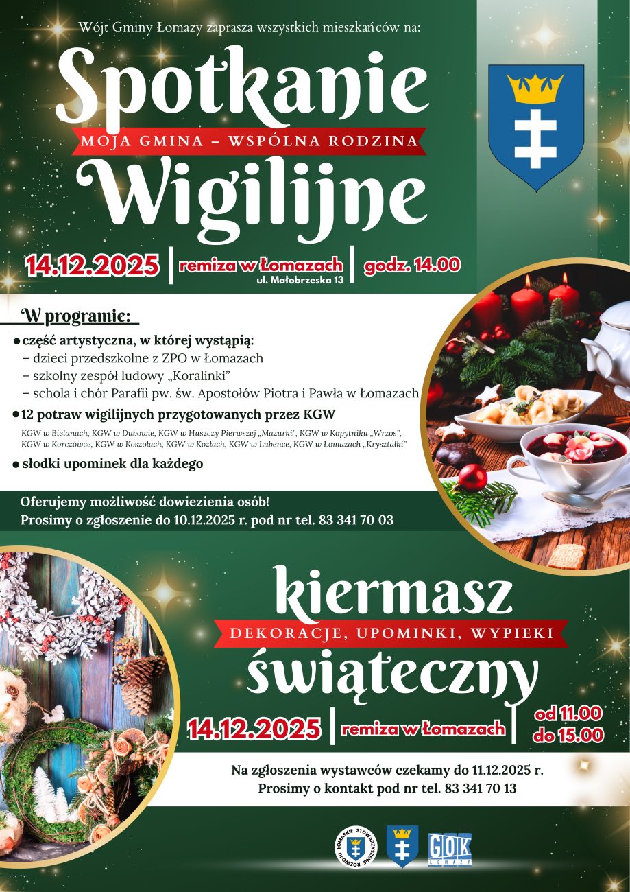 Gminne Spotkanie Wigilijne i Kiermasz Świąteczny w Łomazach – zapowiedź