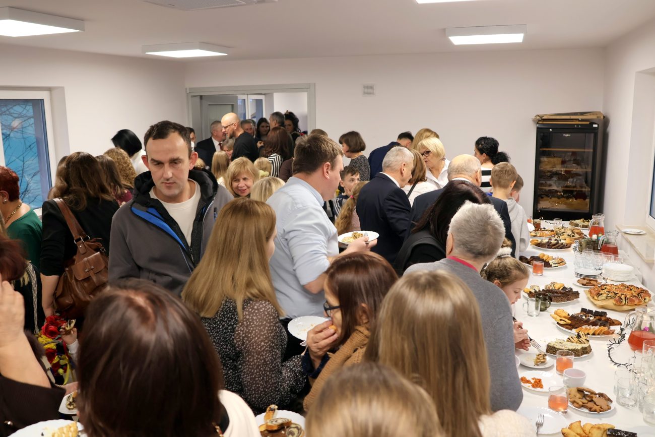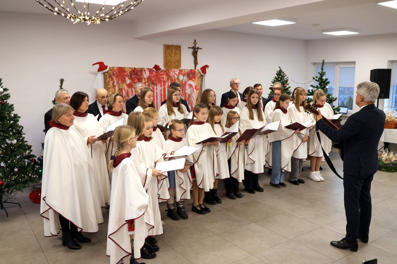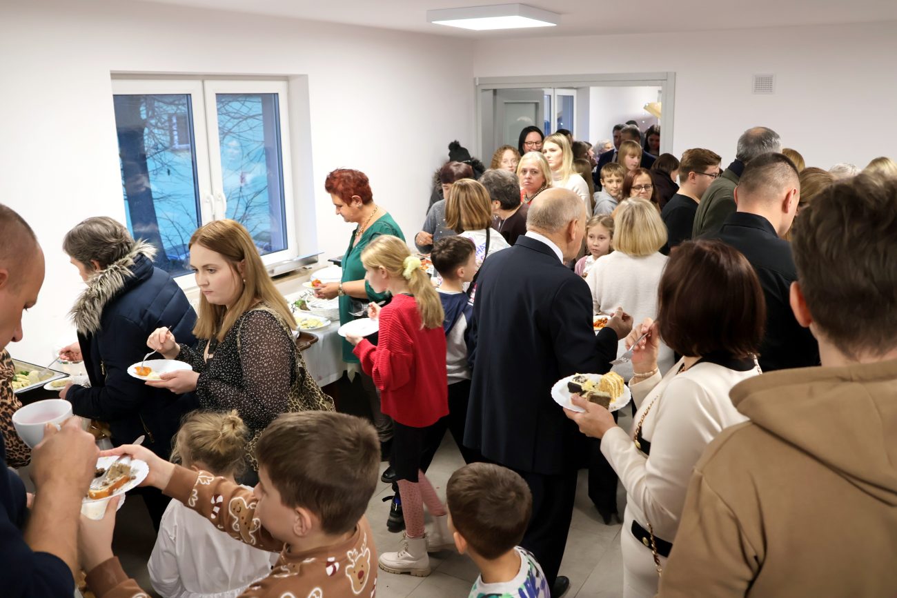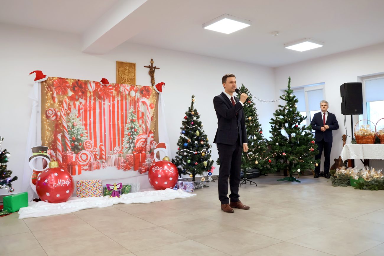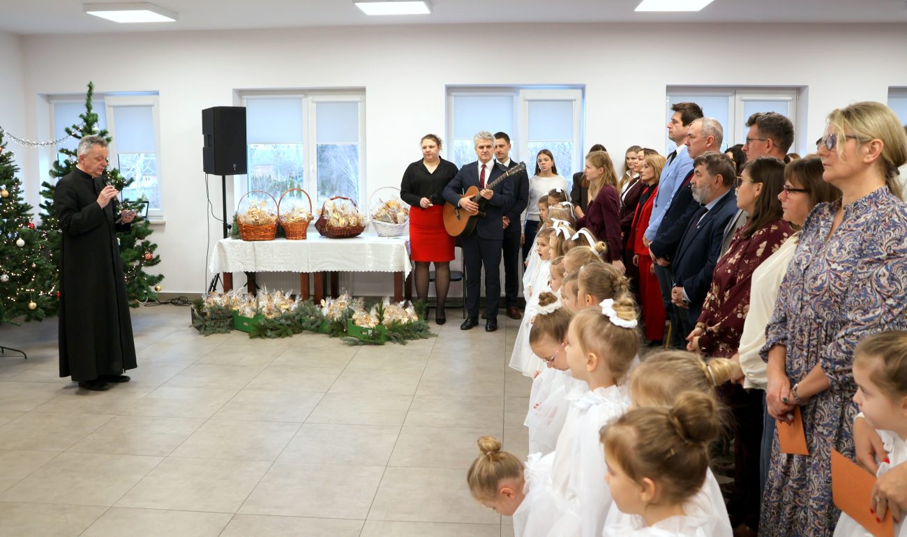 O godzinie 14 rozpoczęło się spotkanie wigilijne. Wójt gminy Jerzy Czyżewski powitał wszystkich przybyłych na to wyjątkowe wydarzenie. Następnie proboszcz parafii w Łomazach ksiądz Adam Kamecki odczytał fragment Ewangelii, po czym wspólnie zaśpiewano kolędy, przy gitarowym akompaniamencie Pawła Tokarskiego.