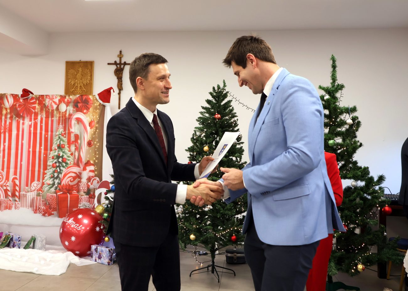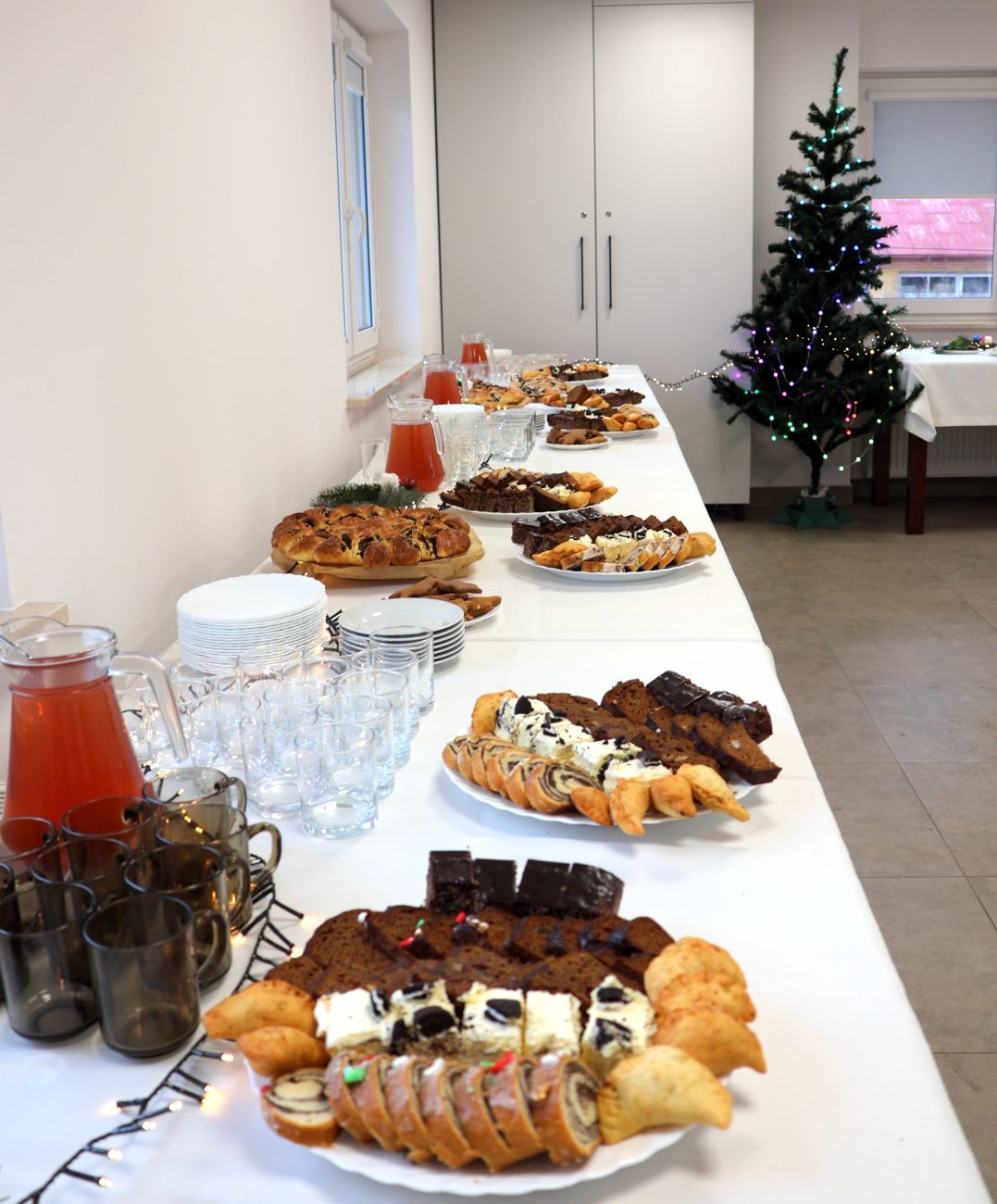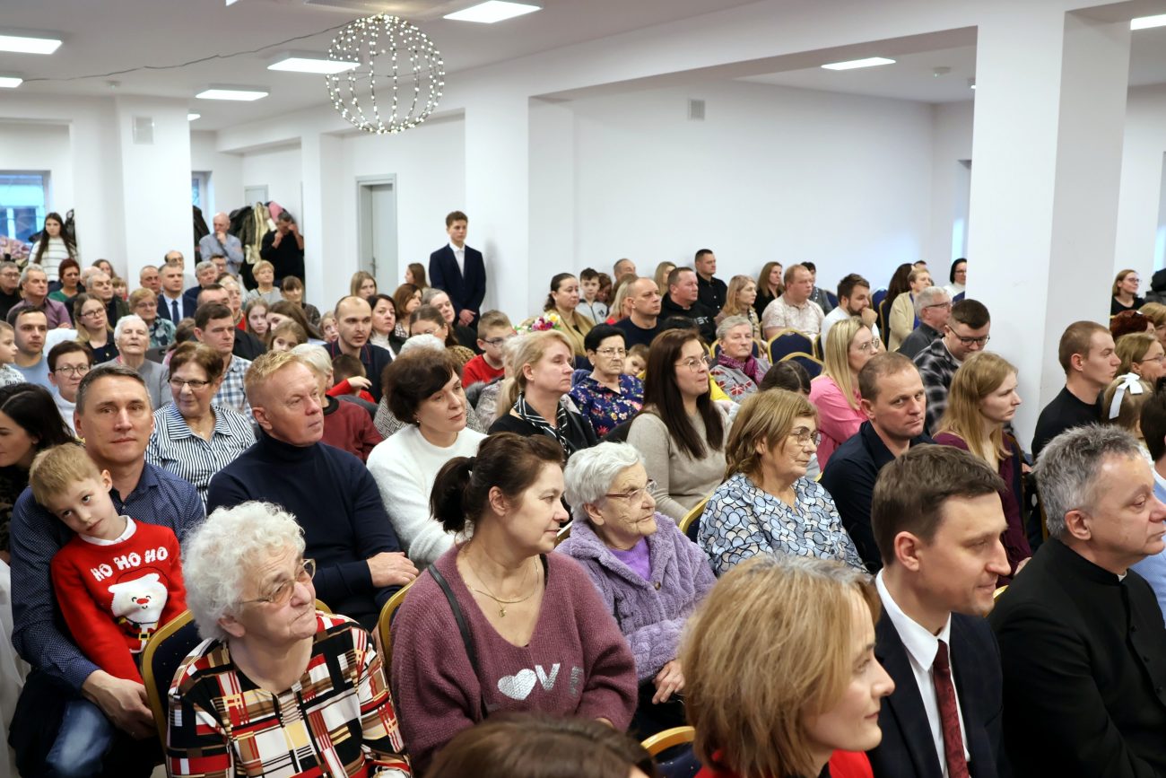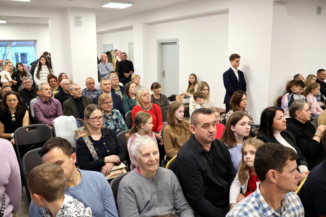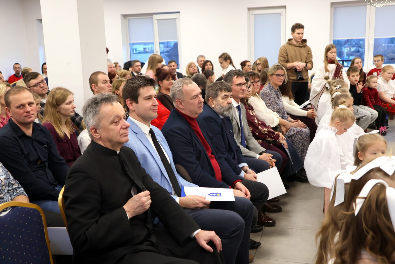 O godzinie 14 rozpoczęło się spotkanie wigilijne. Wójt gminy Jerzy Czyżewski powitał wszystkich przybyłych na to wyjątkowe wydarzenie. Następnie proboszcz parafii w Łomazach ksiądz Adam Kamecki odczytał fragment Ewangelii, po czym wspólnie zaśpiewano kolędy, przy gitarowym akompaniamencie Pawła Tokarskiego.