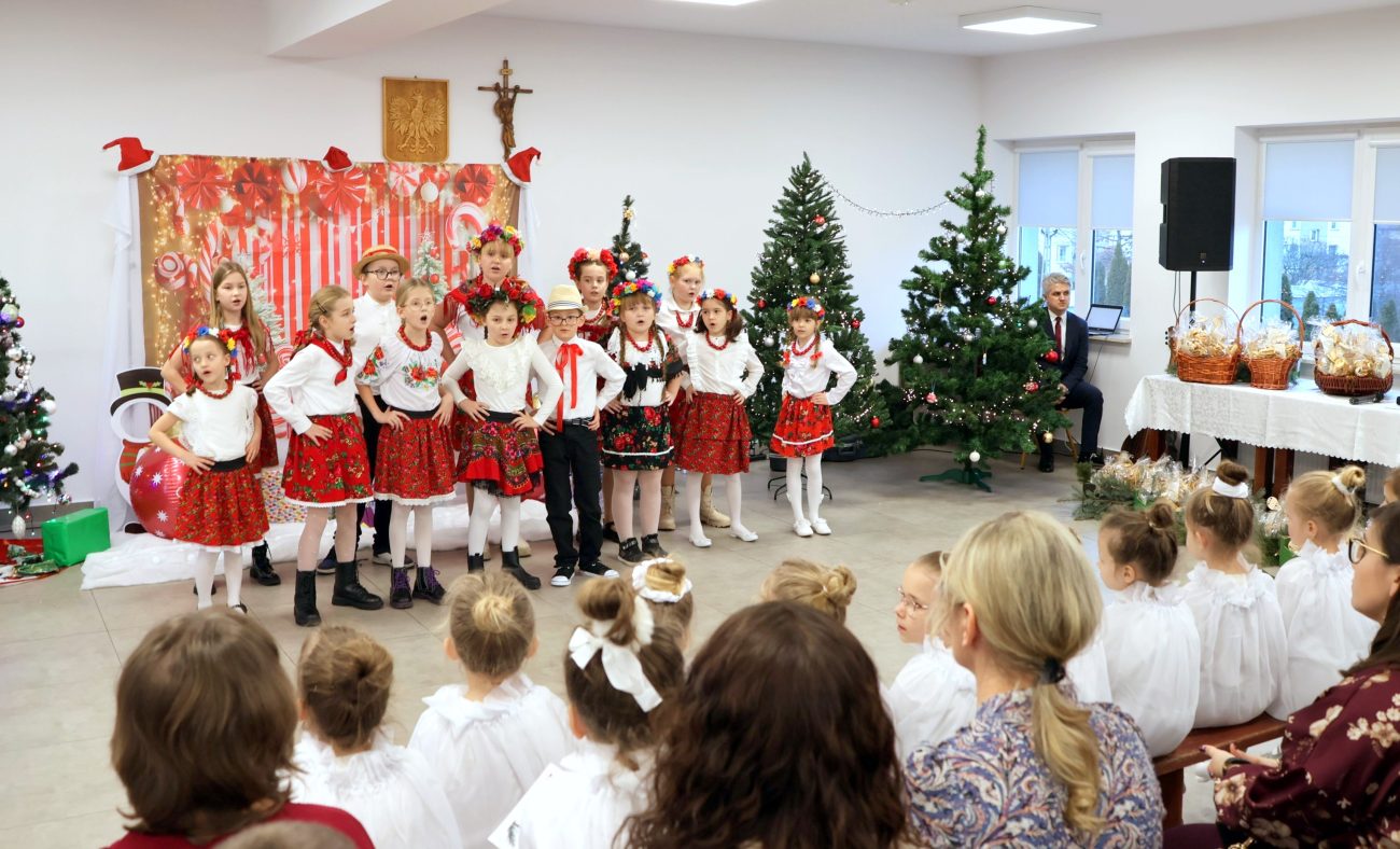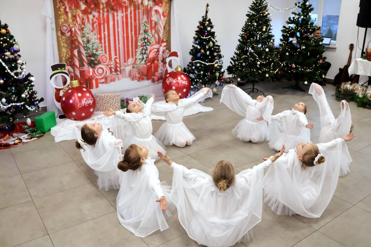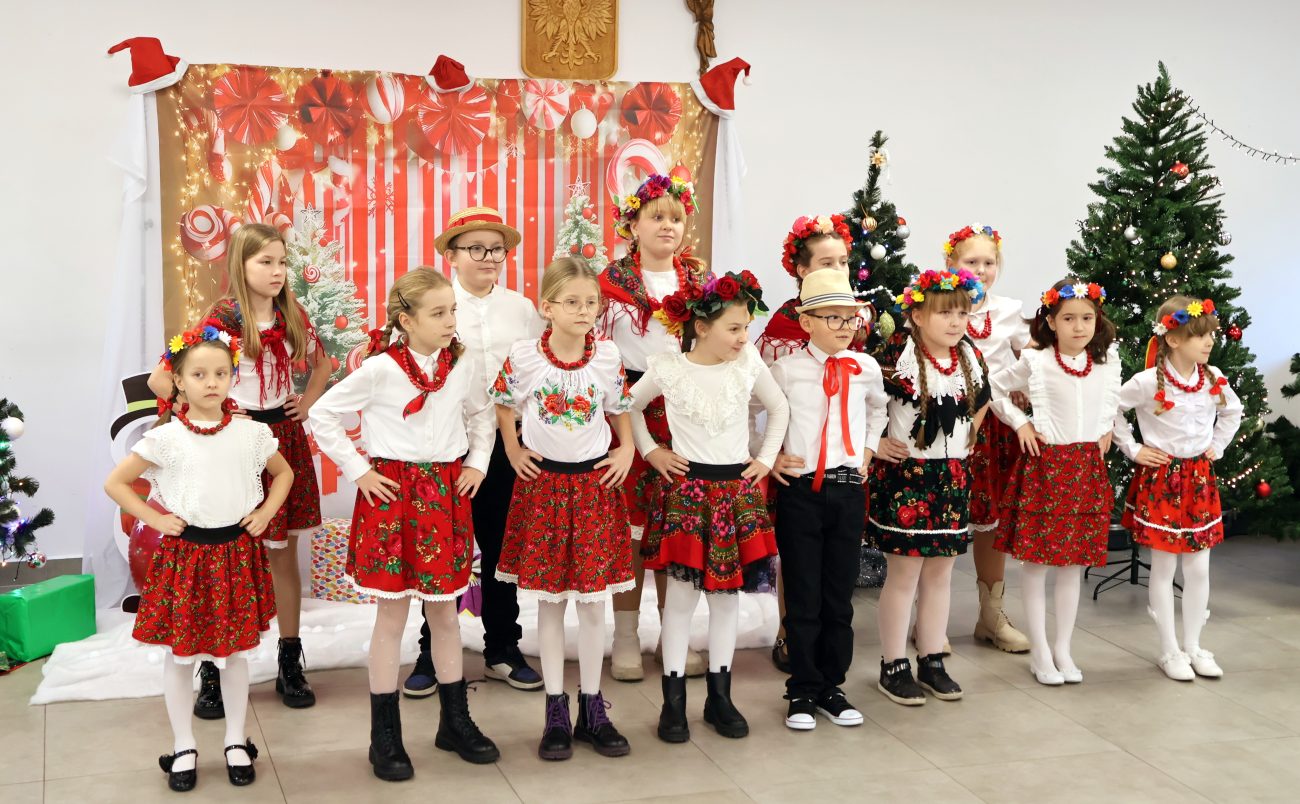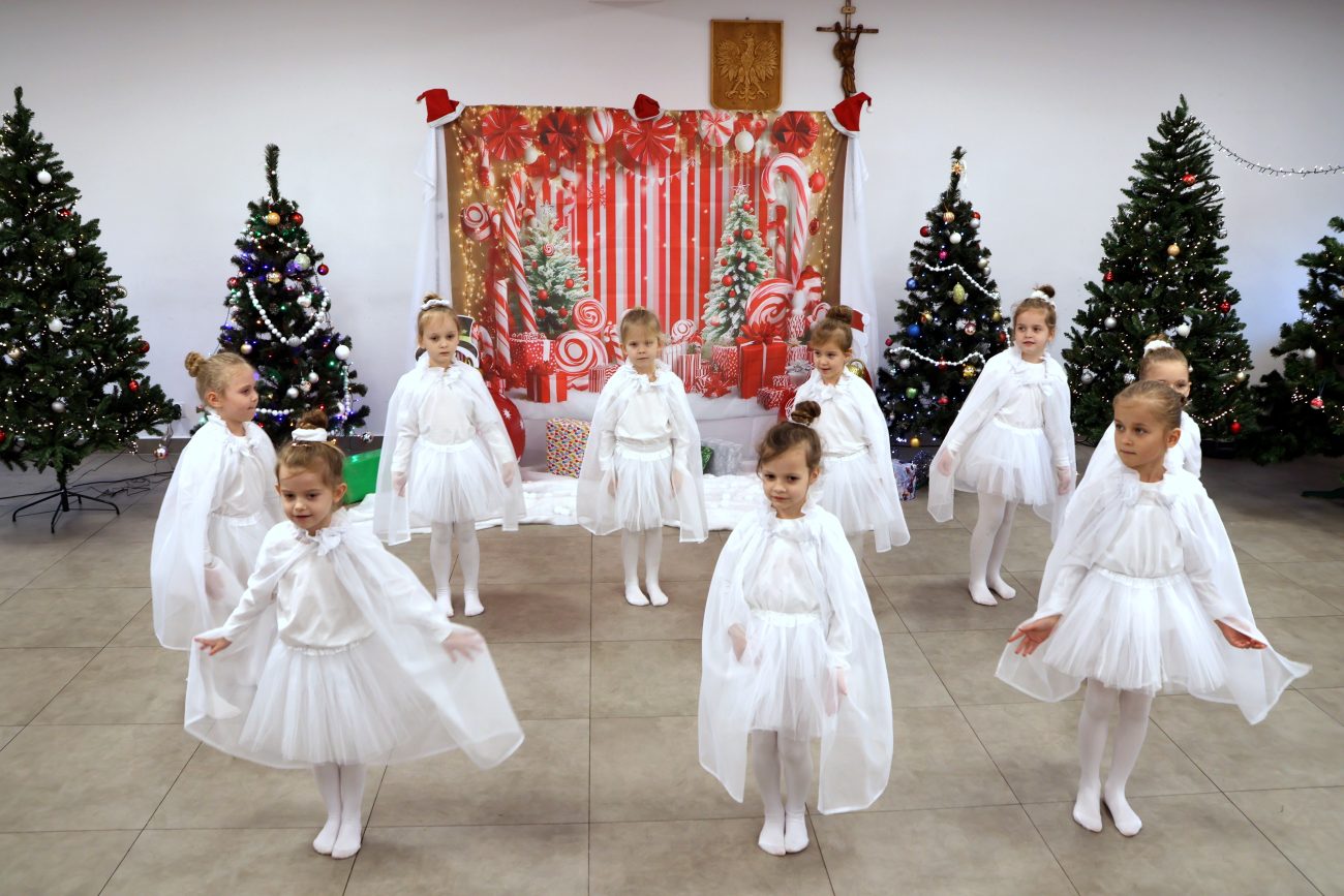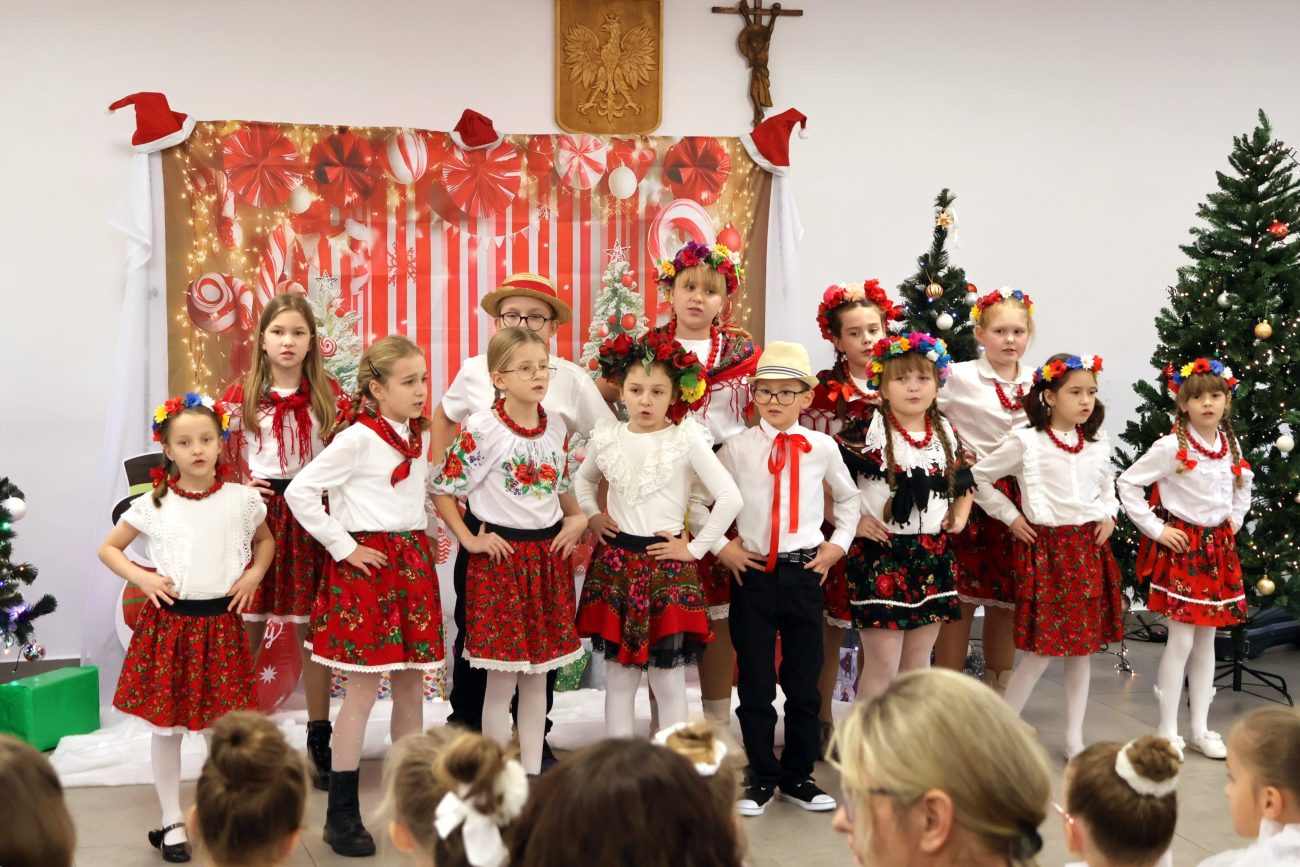 Część artystyczna rozpoczęła się od występu pt. „Taniec Aniołków”, w którym zaprezentowały się dziewczynki z grupy przedszkolnej 4-6-latków, przygotowane pod kierunkiem Moniki Besaraby i Ewy Dekiert. Następnie wystąpił szkolny zespół ludowy Koralinki, nad którym opiekę sprawuję Agnieszka Panasiuk. Kolejny punkt programu stanowił występ grupy 5-6-latków. Dzieci przygotowane przez Ewę Karpowicz i Agnieszkę Garbatiuk wykonały taniec „Kołysanka dla Jezuska”. Odbył się również koncert scholi i chóru z parafii pw. św. Apostołów Piotra i Pawła w Łomazach, prezentujących piękne kolędy pod kierunkiem Pawła Tokarskiego.