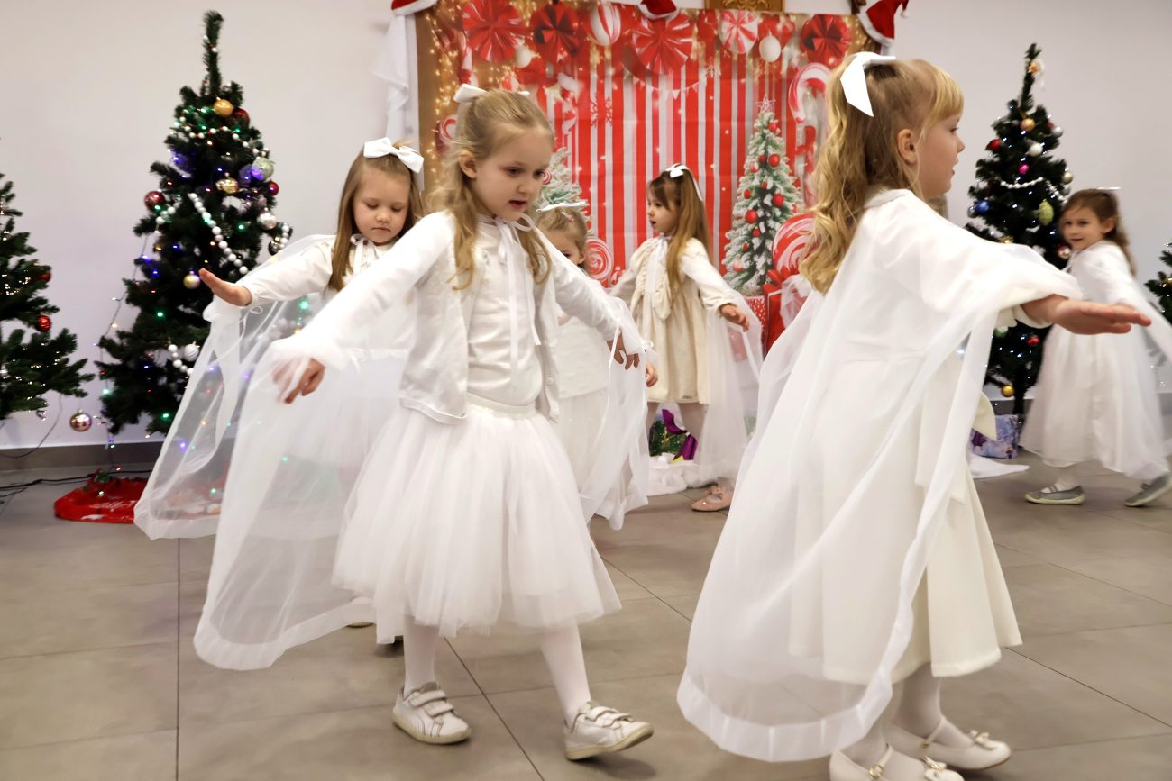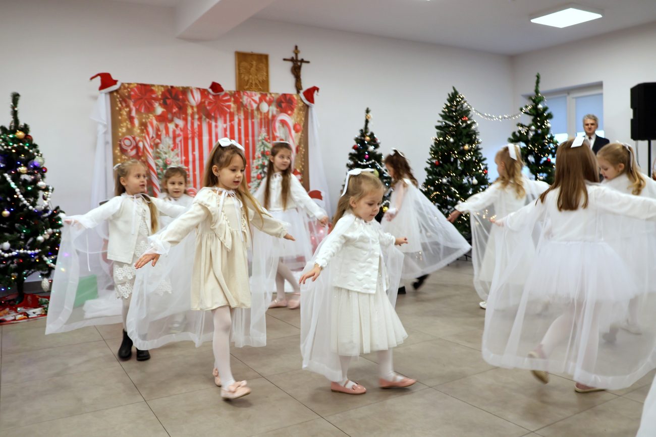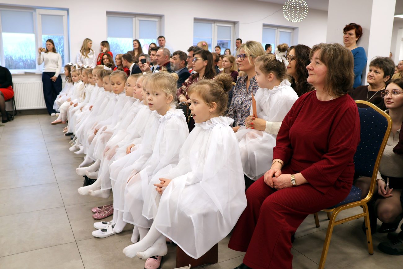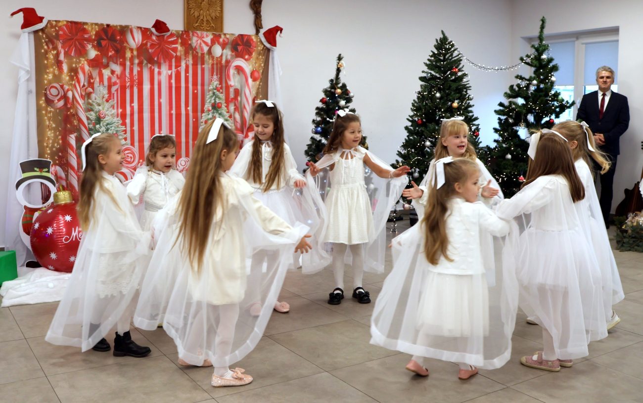 Część artystyczna rozpoczęła się od występu pt. „Taniec Aniołków”, w którym zaprezentowały się dziewczynki z grupy przedszkolnej 4-6-latków, przygotowane pod kierunkiem Moniki Besaraby i Ewy Dekiert. Następnie wystąpił szkolny zespół ludowy Koralinki, nad którym opiekę sprawuję Agnieszka Panasiuk. Kolejny punkt programu stanowił występ grupy 5-6-latków. Dzieci przygotowane przez Ewę Karpowicz i Agnieszkę Garbatiuk wykonały taniec „Kołysanka dla Jezuska”. Odbył się również koncert scholi i chóru z parafii pw. św. Apostołów Piotra i Pawła w Łomazach, prezentujących piękne kolędy pod kierunkiem Pawła Tokarskiego.