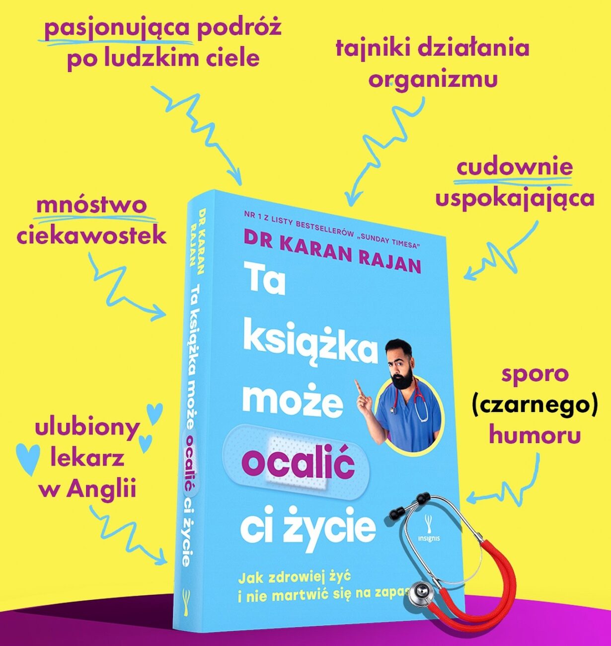 Tym razem w naszym kąciku literackim przedstawiamy dwie pozycje: „Ta książka może ocalić ci życie. Jak zdrowiej żyć i nie martwić się na zapas” dr. Karana Rajana, czyli przezabawny, fascynujący i obalający mity przewodnik po ludzkim ciele, napisany przez ulubionego chirurga Brytyjczyków, a także „Cały ten Marvel. Niesamowita podróż po uniwersum Marvela – epopei 27 tysięcy komiksów” autorstwa Douglasa Wolka. Wydanie obu tych książek po polsku to zasługa Wydawnictwa Insignis.