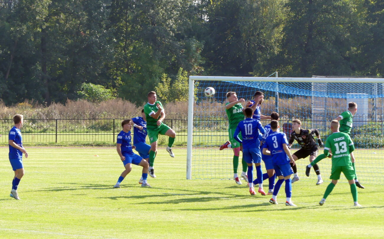Lubelska IV liga. Najbardziej istotnym meczem dla naszych zespołów wydawała się sobotnia konfrontacja ekip zamykających ligową stawkę, obu z zerowym dorobkiem punktowym. Niestety, zwycięsko wyszła z niej w Międzyrzecu Tanew, wygrywając 1:3, przez co MOSiR Huragan coraz bardziej się pogrąża. A zaczęło się dobrze, bo od faulu Łukasza Kusiaka na Michale Statkiewiczu i wykorzystanym w 8. minucie przez Anthonego de Souzę karnego. Niestety, jeszcze w pierwszej połowie dwa kardynalne błędy popełnił kapitan Miłosz Koryciński, i na prowadzenie wyszli goście. Najpierw niedokładnie wycofał w 17. minucie piłkę do Pavla Aniskevicza, z rogu dośrodkował Mateusz Książek, główkował Łukasz Skwarek, piłka odbiła się od pleców Bartłomieja Semeniuka i wpadła do siatki. Z kolei w 33. minucie stracił w dryblingu piłkę na rzecz Książka, a ten wykorzystał sytuację sam na sam z bramkarzem. Międzyrzeczan dobił w 64. minucie Skwarek, celnie główkując po rogu Książka.