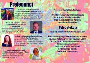 Na to wydarzenie naukowe zapraszają prezydent miasta oraz dyrektor II LO im. E. Plater. Spotkanie zostało przygotowane w ramach projektu Naukowa Platerka przez koło naukowe LEOO (Local Earth Observation Observatory).