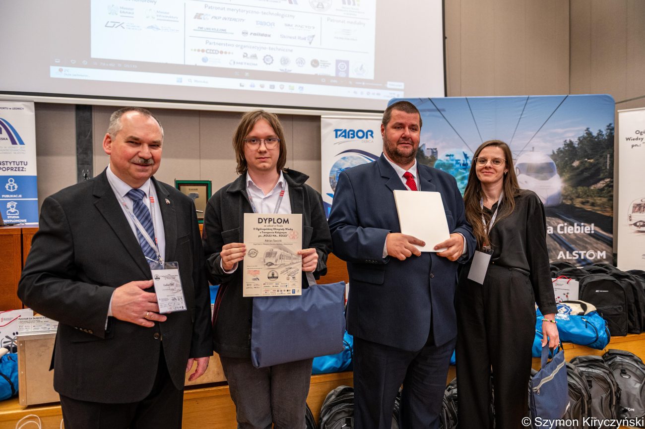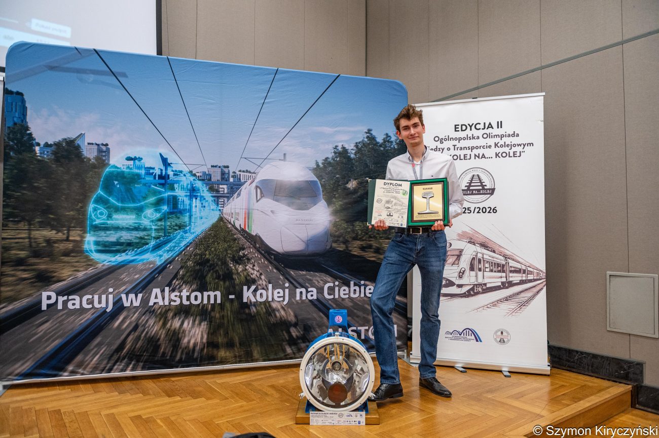 To prestiżowe wydarzenie zgromadziło najlepszych uczniów z całej Polski, zainteresowanych tematyką transportu kolejowego oraz nowoczesnych technologii stosowanych w branży kolejowej. Co szczególnie warte podkreślenia, Szymon obronił tytuł zwycięzcy z ubiegłego roku, potwierdzając swoją niezwykłą wiedzę, systematyczność oraz pasję do kolejnictwa. To osiągnięcie stawia go w gronie absolutnej czołówki młodych pasjonatów transportu kolejowego w Polsce.