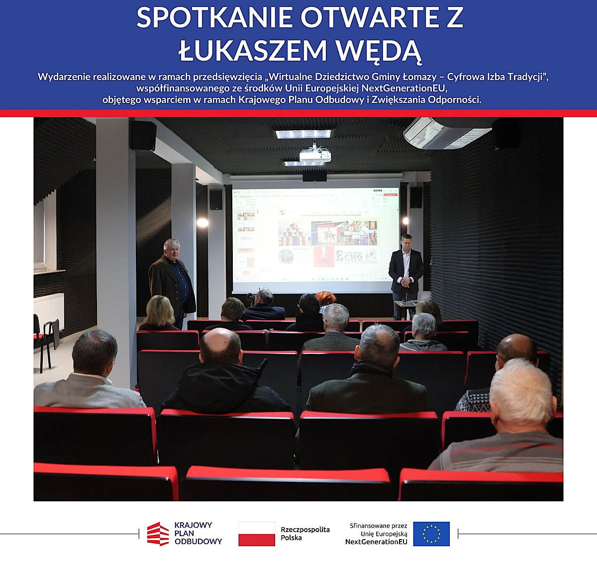 8 lutego w Gminnym Ośrodku Kultury w Łomazach odbyło się spotkanie otwarte z Łukaszem Wędą, czyli regionalistą w cyfrowym świecie, w ramach realizowanego przez GOK w Łomazach projektu pod nazwą „Wirtualne Dziedzictwo Gminy Łomazy – Cyfrowa Izba Tradycji”. Łukasz Węda, regionalista, archiwista i pasjonat historii, zaprezentował i omówił wiele przykładów archiwalnych dokumentów i wycinków prasowych, związanych z gminą Łomazy. Przedstawił również zbiór fotografii, ukazujących mieszkańców oraz ich codzienne życie sprzed kilkudziesięciu lat.