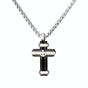 Bardzo ciekawym modelem, który jest dedykowany dla osób, które chcą wybrać dla siebie unikalny model, który wyróżni się na tle innych, konkurencyjnych ofert, jest krzyżyk z motywem kotwicy. Barwy dominujące to srebro wraz z czernią. Naszyjnik został zawieszony na łańcuszku o długości 65 cm. Kotwica symbolizuje pewność siebie, bezpieczeństwo, wierność oraz zwycięstwo. Jest to również symbol męskiej siły.