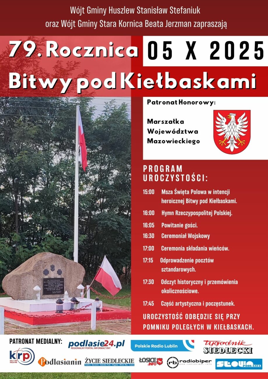 5 października 1946 roku oddział WiN inspektoratu Północ-Biała Podlaska, pod dowództwem por. Tadeusza Marczuka ps. „Kurzawa” i por. Franciszka Michaluka ps. „Polny”, stoczył bohaterską walkę z przeważającymi siłami UB, MO, KBW i NKWD w miejscowości Kiełbaski w gminie Stara Kornica w powiecie łosickim. W 79. rocznicę tej bitwy, w niedzielę 5 października br., zaplanowano uroczystość, na którą zapraszają wójtowie gmin Huszlew i Stara Kornica.