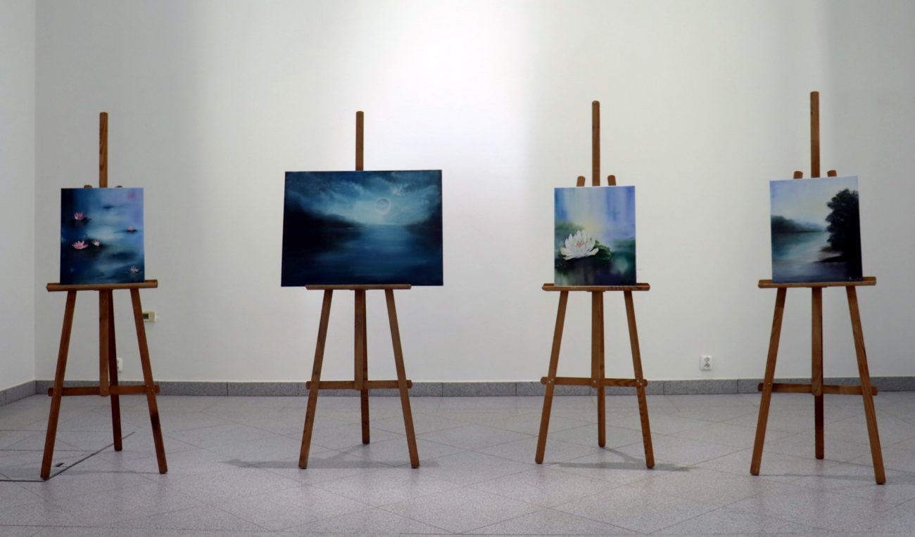 Już od pierwszych chwil po wejściu na salę dało się odczuć wyjątkowy klimat – zapach farb, delikatne dźwięki muzyki w tle i subtelne światło wydobywające z obrazów ich najpiękniejsze detale.