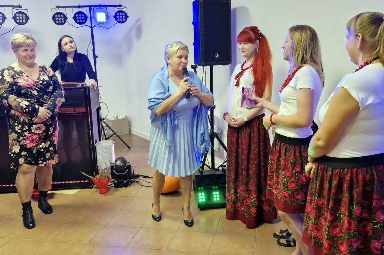 Po czym w imieniu wszystkich gminnych KGW – i w otoczeniu ich przewodniczących – przekazała na ręce szefowej Katarzyny Owczarek upominek, za który Ossowianki będą mogły „dokupić sobie coś do kuchni”.