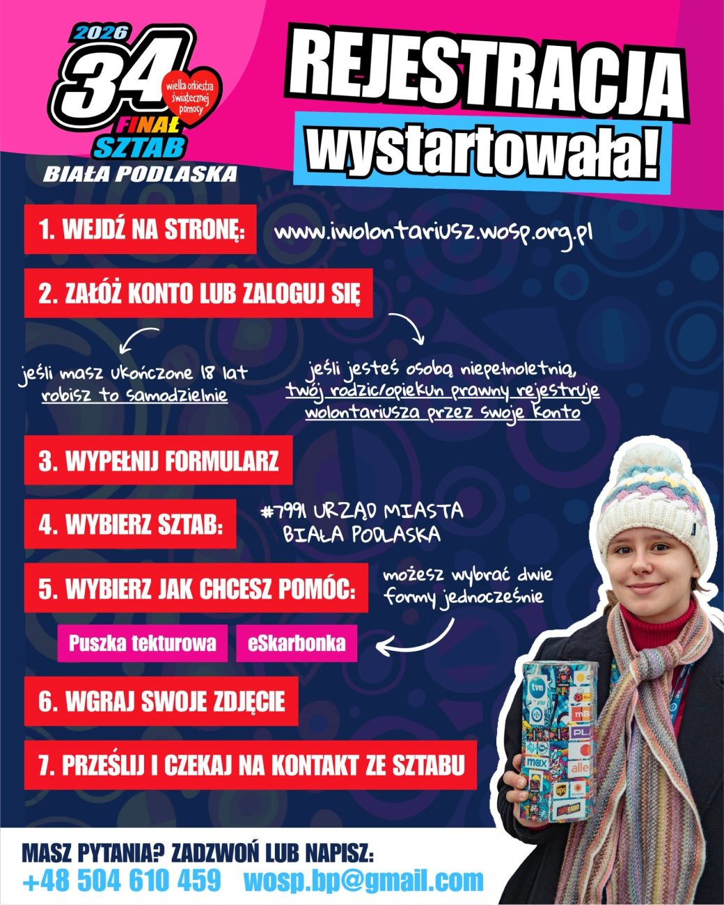 – Jesteśmy właśnie na ostatniej prostej rejestracji wolontariuszy – zostały już tylko ostatnie miejsca i dni. Gorąco zachęcamy mieszkańców Białej Podlaskiej i okolicznych gmin do dołączenia do wspólnego grania – informuje sztab WOŚP w Białej Podlaskiej. – To już naprawdę ostatnia szansa, by w styczniu wyjść z puszką i zagrać razem z nami. A im nas więcej, tym głośniej zagramy! Grajmy do końca świata i jeden dzień dłużej!