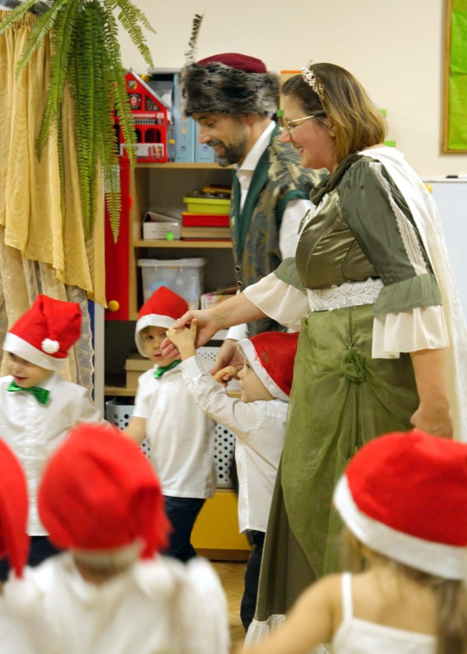 Pasowanie miało charakter opowieści bajkowej o krasnoludkach i dworze królewskim, w której królową była dyrektor przedszkola Krystyna Reluga. Królowa, z pomocą Michała Litwiniuka, dokonała uroczystego wprowadzenia Krasnoludków do przedszkolnego świata i pasowała je uroczyście na przedszkolaków.