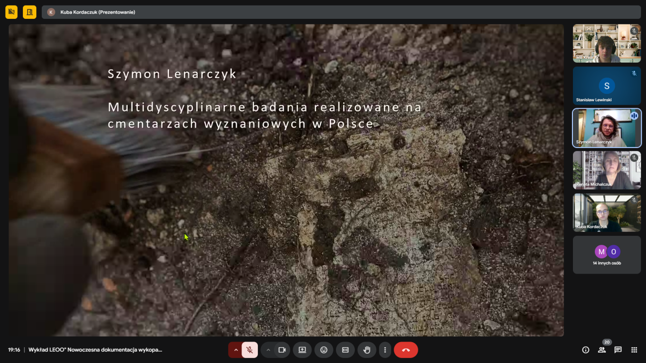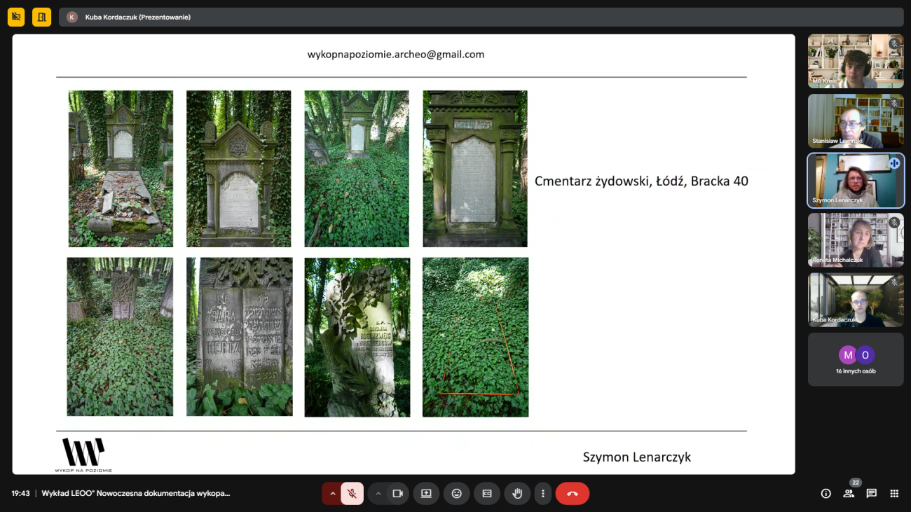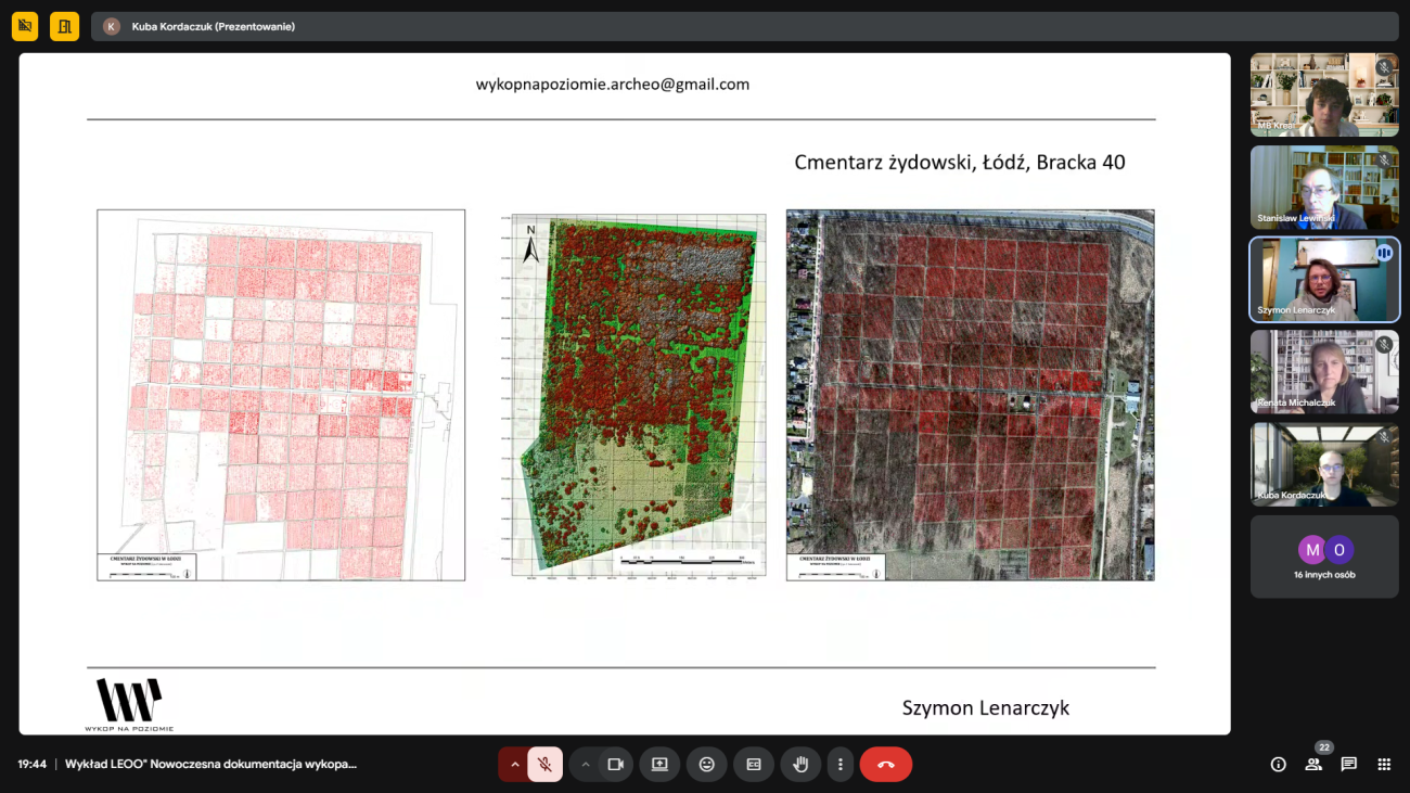 Gość z pasją opowiadał o swojej ścieżce kariery oraz o jej początku, mającym miejsce w Libii. Dzięki różnym misjom archeologicznym na całym świecie, trwającym łącznie ponad 100 miesięcy, Szymon Lenarczyk mógł rozpocząć swoją działalność w Polsce. Wykorzystując lidar – czyli skaner umożliwiający mapowanie terenu, przy zastosowaniu światła laserowego – wykonał trójwymiarowe mapy cmentarzy żydowskich, takich jak przy ulicach Okopowej czy św. Wincentego w Warszawie.