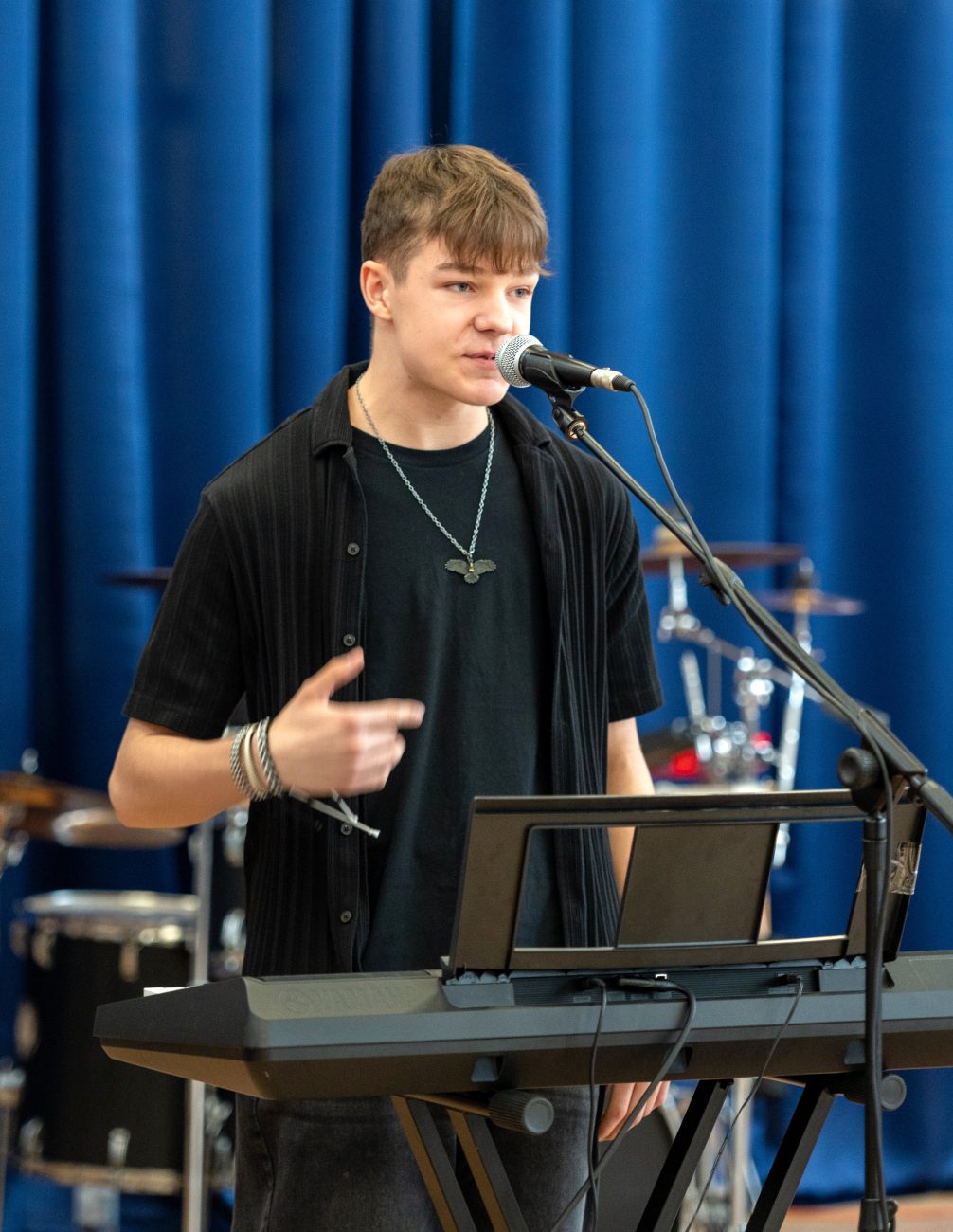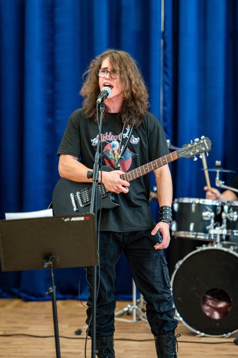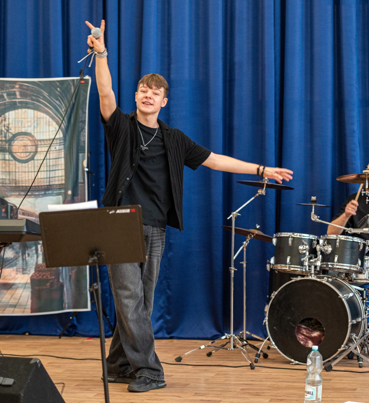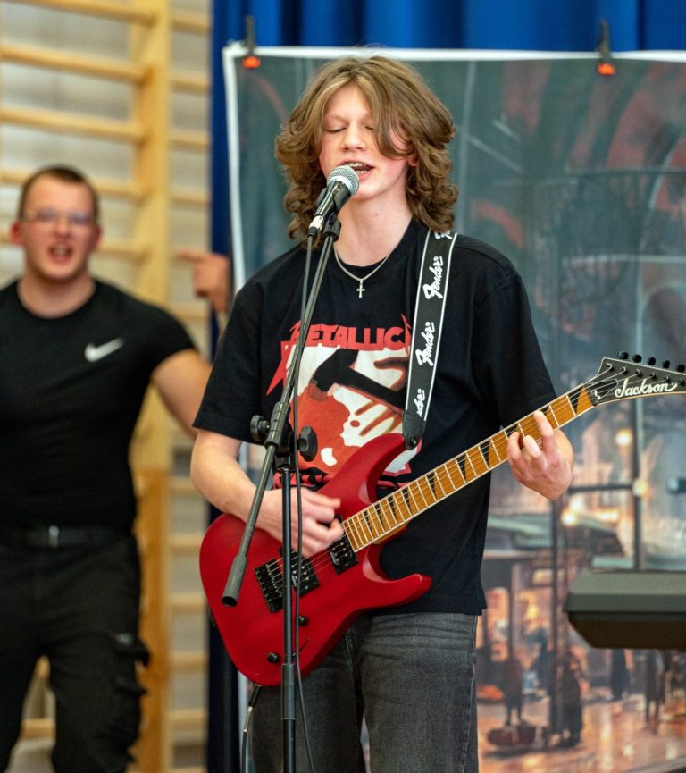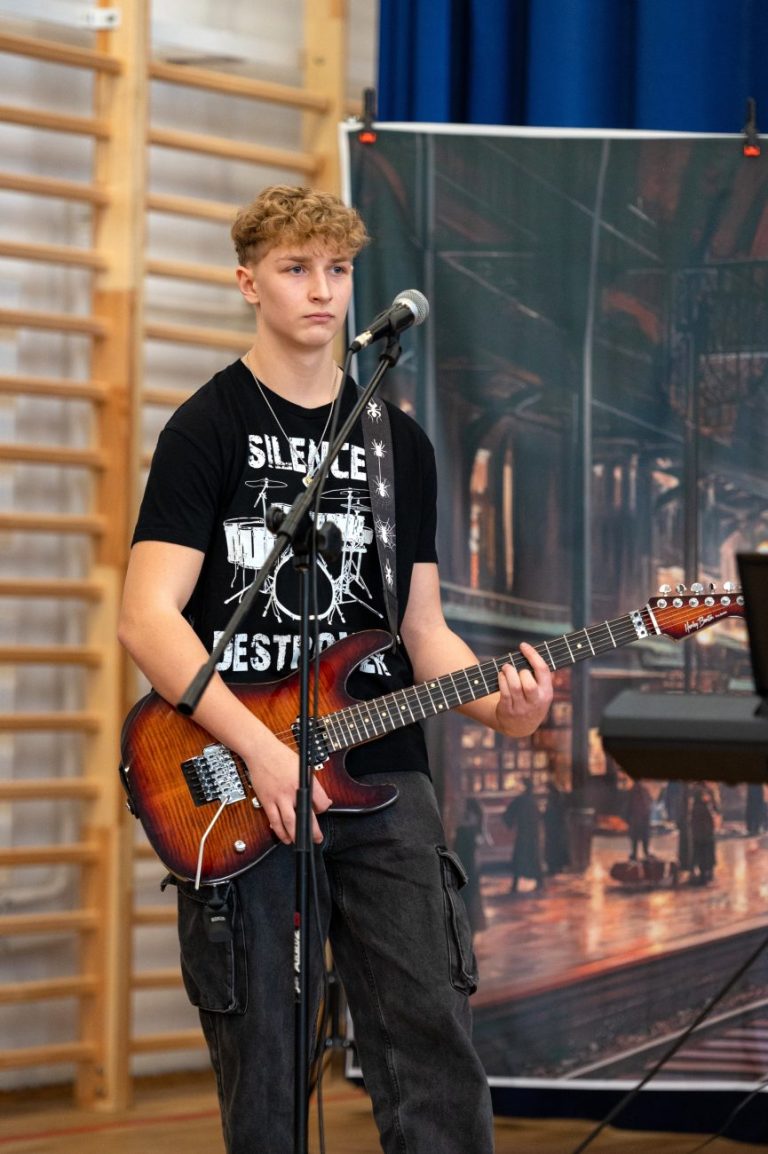 Po przerwie nastąpiła jednak część, na którą wielu uczniów czekało najbardziej – koncert. Sonic Explosion wszedł na scenę już nie jako akompaniator, lecz jako pełnoprawny, mocny punkt programu. Ich występ pokazał pełnię możliwości zespołu: od mocnych gitarowych brzmień, po niezwykłą dynamikę i świetne zgranie instrumentalistów.