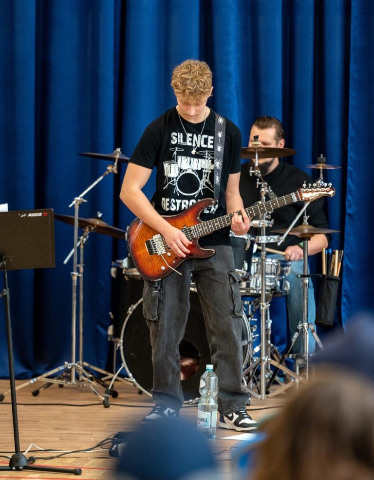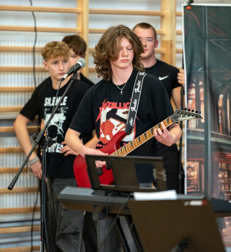 Zespół czuwał nad każdym muzycznym akcentem wydarzenia – ich obecność była tłem, które scalało wszystkie części apelu. Dzięki nim zarówno oficjalne fragmenty, jak i przerwy muzyczne miały ten sam konsekwentny, rockowy charakter. To rzadkie, by szkolny apel miał tak spójną i profesjonalną oprawę muzyczną – i to właśnie zasługa Sonic Explosion.