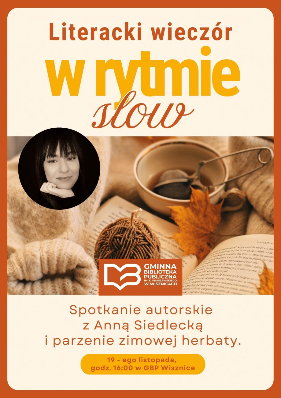 Wydarzenie pod hasłem „Literacki wieczór w rytmie słów” odbędzie się w środę 19 listopada o godzinie 16 w siedzibie biblioteki, która aktualnie mieści się w Szkole Podstawowej w Wisznicach.