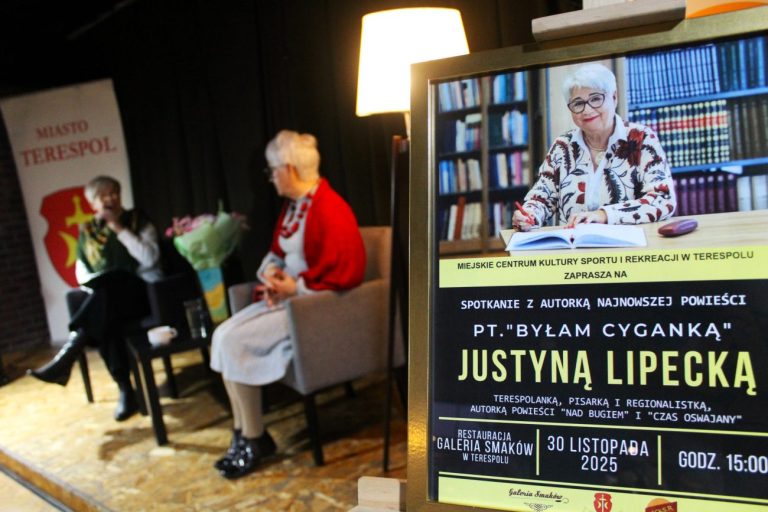 W niedzielę 30 listopada w restauracji Galeria Smaków odbyło się spotkanie z terespolską pisarką i regionalistką Justyną Lipecką, która promowała swoją trzecią, najnowszą powieść pt. „Byłam Cyganką”. Rozmowę z gościem poprowadziła dyrektorka MCKSiR w Terespolu Anna Pietrusik.