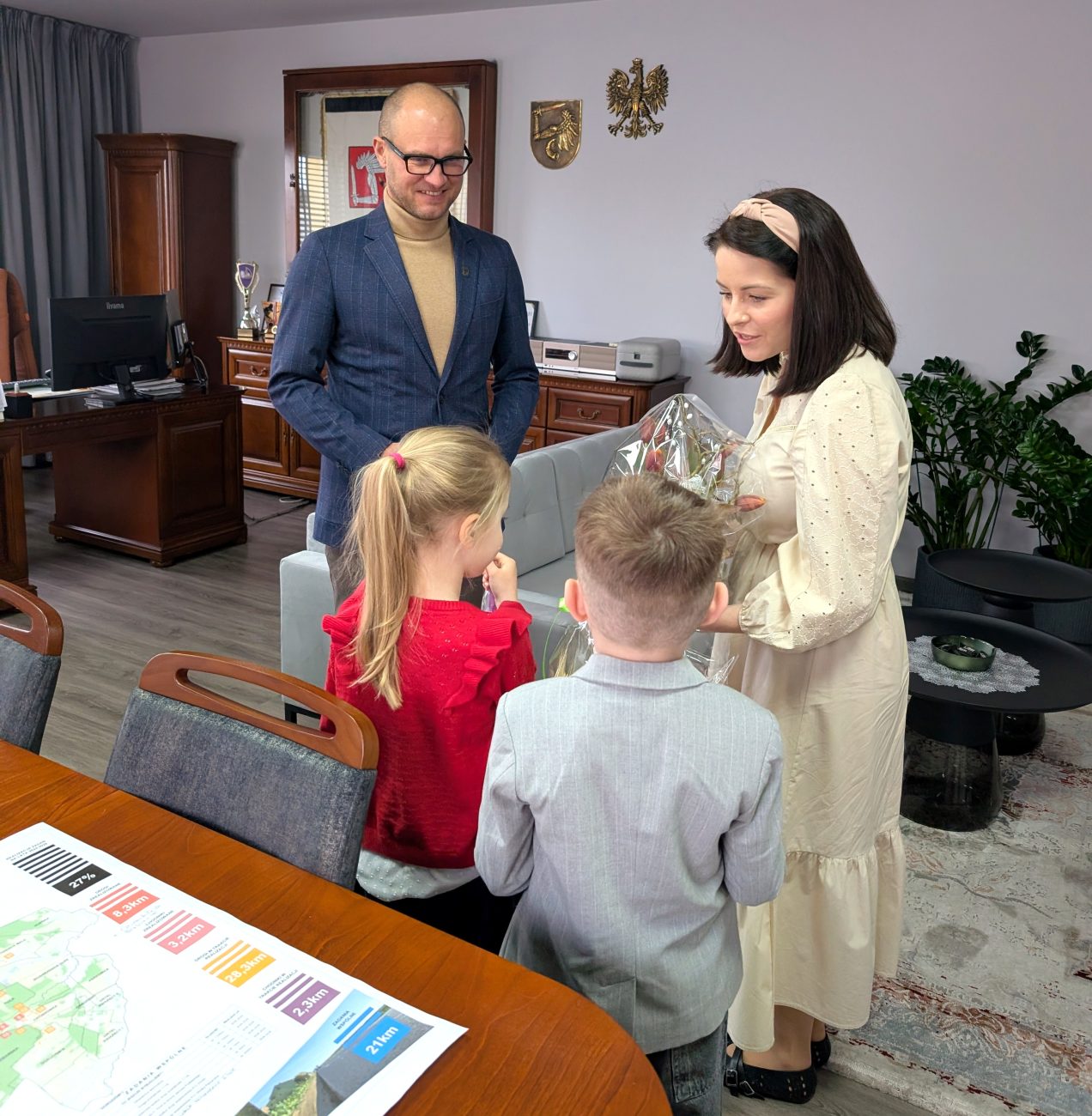 Delegacja najmłodszych mieszkańców, reprezentowana przez Ewę i Oliwiera z grupy Pszczółek, odwiedziła Urząd Gminy oraz referat oświaty, który obecnie mieści się w dworku w Wilczynie. Przedszkolaki spotkały się z wójtem gminy Biała Podlaska Konradem Gąsiorowskim oraz przedstawicielami władz gminnych.
