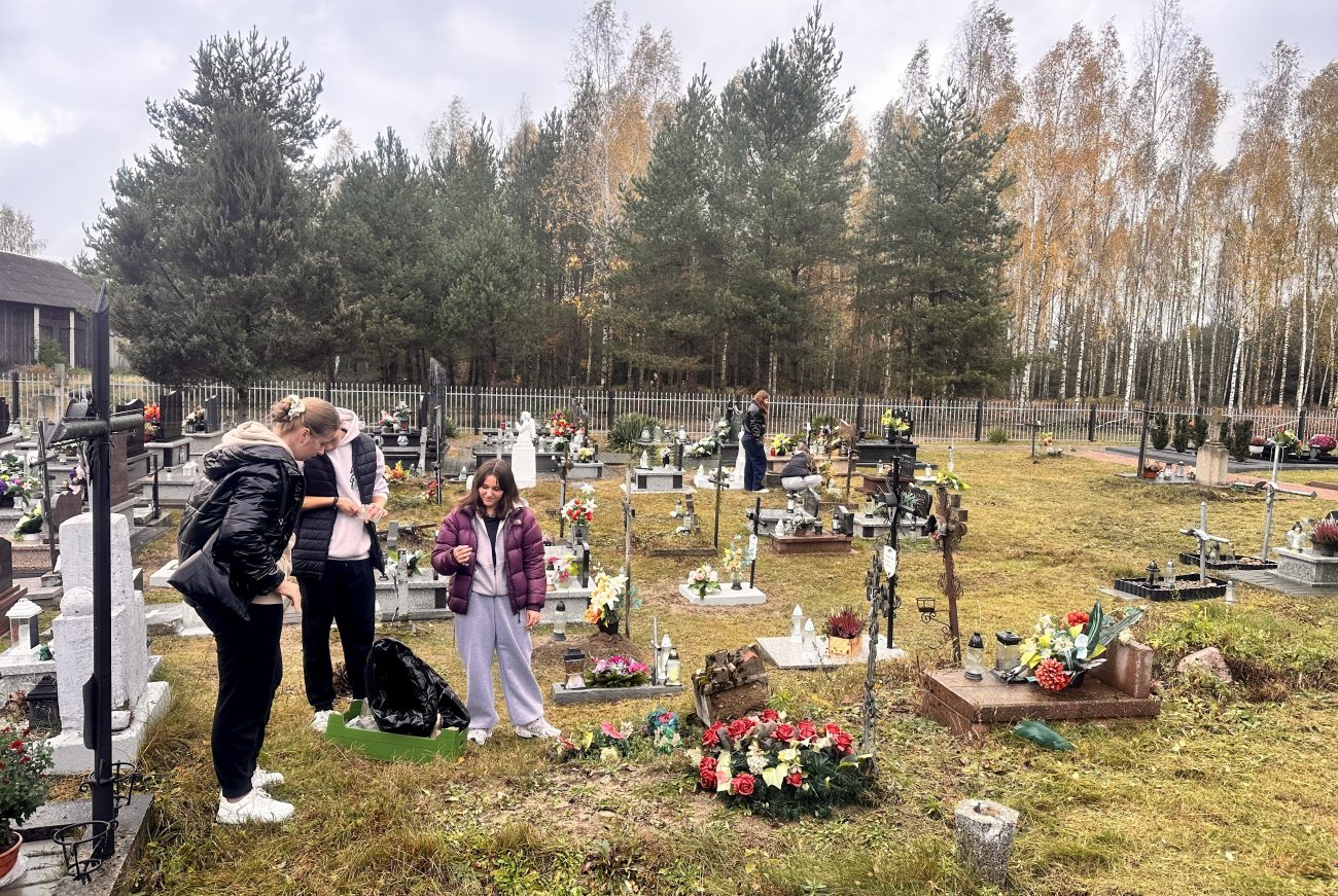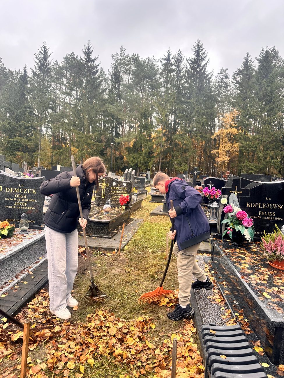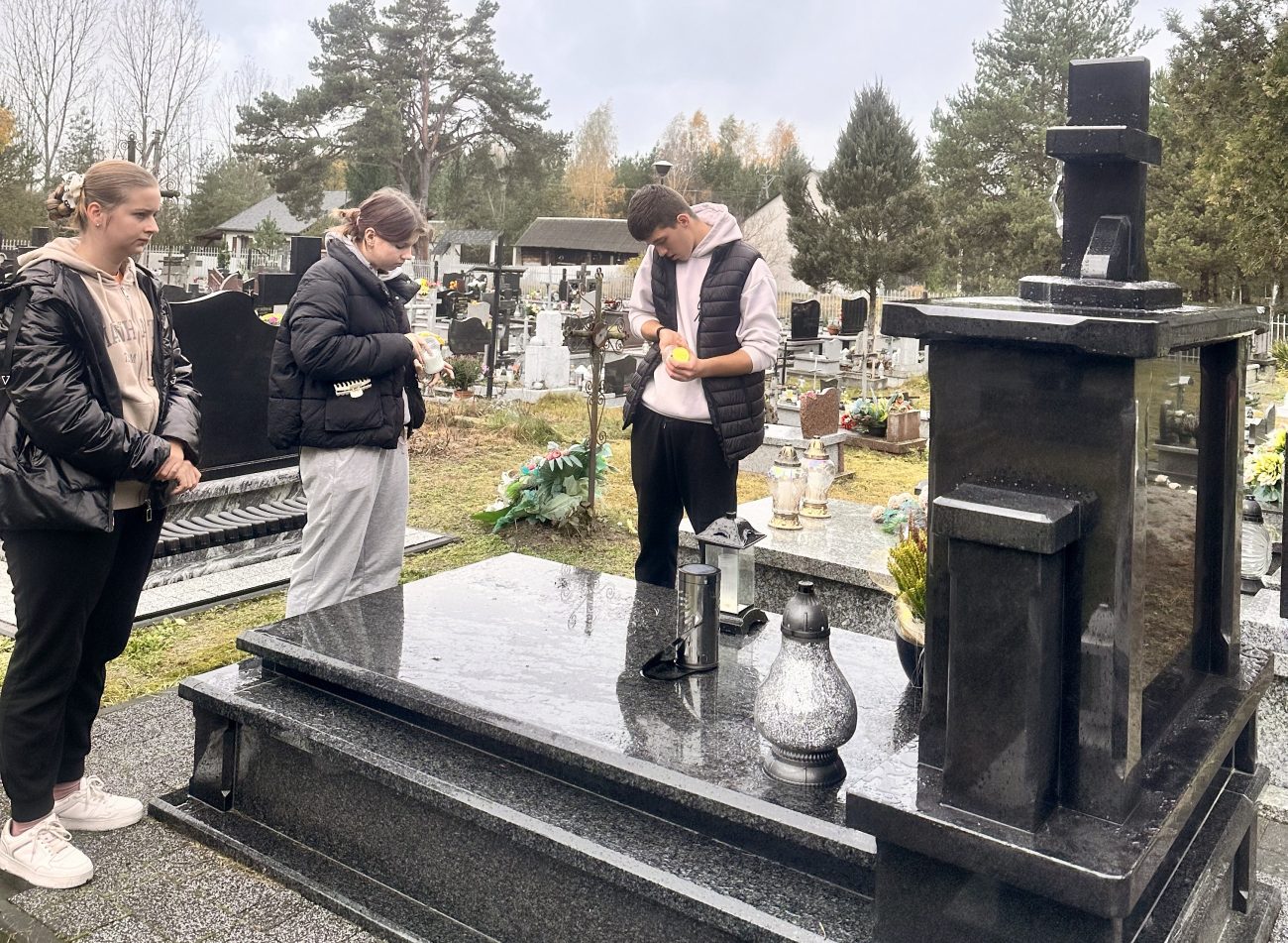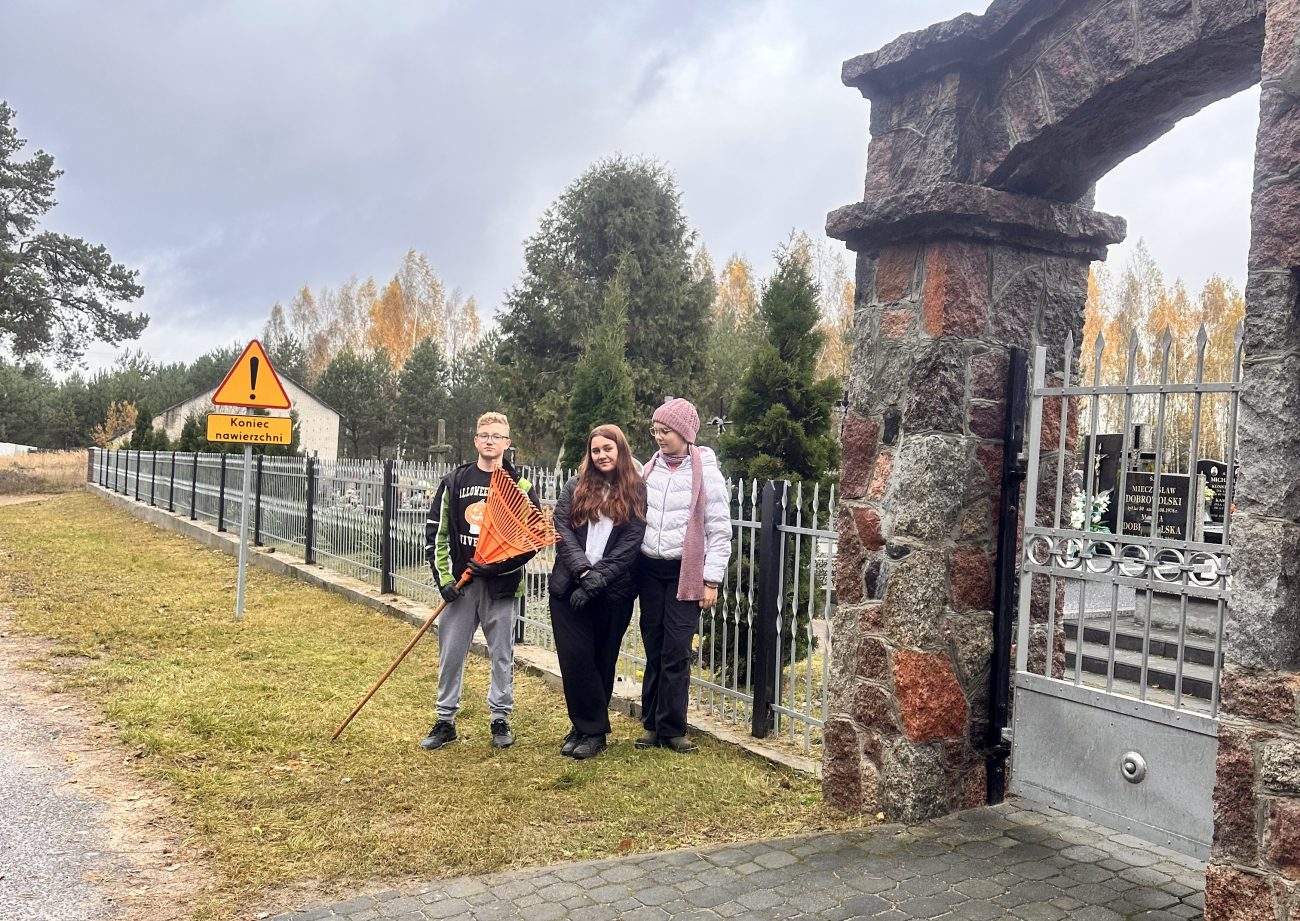 Działania te miały na celu nie tylko uporządkowanie grobów, ale także były wyrazem szacunku i pamięci o tych, którzy odeszli. Uczniowie z zaangażowaniem i troską sprzątali zaniedbane zakątki cmentarza, usuwając liście i śmieci oraz dbając o estetykę tego miejsca. W ramach akcji uczniowie zapalili symboliczne „światełka pamięci” na grobach zmarłych nauczycieli, pracowników szkoły, znanych osób ze środowiska lokalnego oraz na grobach opuszczonych, które potrzebują naszej troski i pamięci.