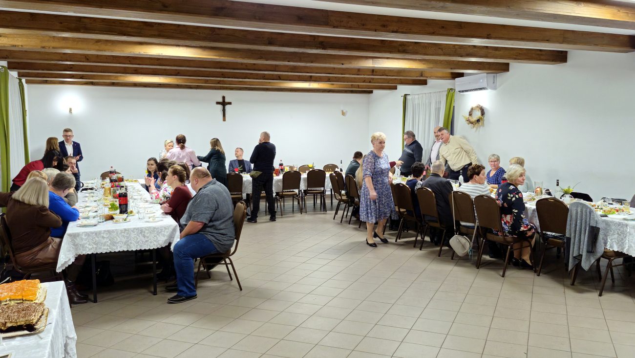 W Ludwinowie roboty nie było już tak dużo, ale dzięki wsparciu wykonano instalację fotowoltaiczną, zaaranżowano wiatrołap i pomieszczenia gospodarcze. – No i przede wszystkim umeblowano główną salę w nowe stoły i krzesła oraz wyposażono kuchnię w meble, stół ze stali nierdzewnej i wszystkie niezbędne sprzęty i naczynia. Bo wcześniej w kuchni w zasadzie nic nie mieliśmy, poza kilkoma starymi biurkami. A teraz panie z KGW mają pełne wyposażone, także dzięki pieniądzom pozyskanym przez KGW z Agencji Restrukturyzacji i Modernizacji Rolnictwa, za które na przykład zakupiliśmy chłodziarki, żeby było gdzie przechowywać produkty i potrawy. I dzisiaj właśnie chcemy uczcić – razem z mieszkańcami, zaproszonymi władzami gminy i kołami gospodyń z terenu gminy – zakończenie drugiego etapu inwestycji – mówi Mateusz Kobryński. I dodaje: – Ta świetlica to nie tylko cztery ściany budynku, ale przede wszystkim to, co się w niej dzieje. Ta atmosfera, to, że możemy się tu spotkać. To jest wspaniałe, że po tych dziesięciu latach mozolnej pracy, możemy dziś wspólnie celebrować to dzieło.