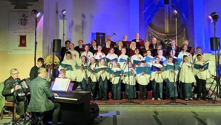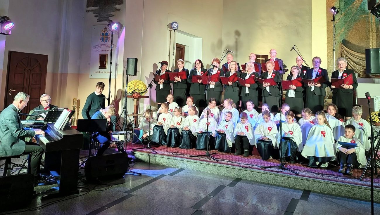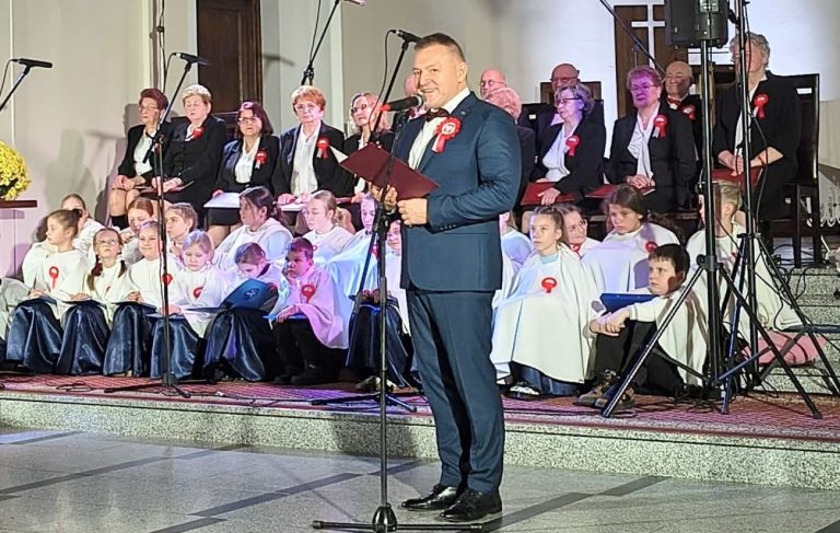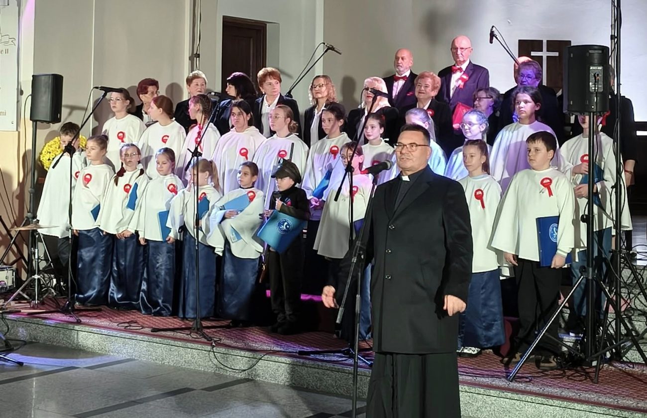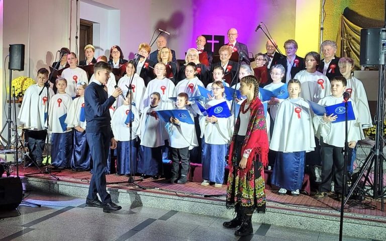 Prowadząca uroczystość dyrektorka MCKSiR Anna Pietrusik zaprosiła licznie zabranych pod pomnikiem mieszkańców na wieczorną część artystyczną w kościele pw. Św. Trójcy, czyli na koncert pieśni patriotycznych pt. „Z serca dla Niepodległej”, w wykonaniu szkolnego chóru Corda Vox i senioralnego Echo Polesia. Wystąpili także soliści z zajęć wokalnych MCKSiR. Publiczność miała okazję wysłuchać wielu utworów, m.in: „My pierwsza brygada”, „Niepodległa – niepokorna”, „Bywaj dziewczę zdrowe”, „Hej hej ułani”, „Szara Piechota”, „Ostatni Mazur” i „Wolność – Tedeum”. Widzowie byli zachwyceni i nie pozwolili naszym artystom zejść ze sceny bez bisów!