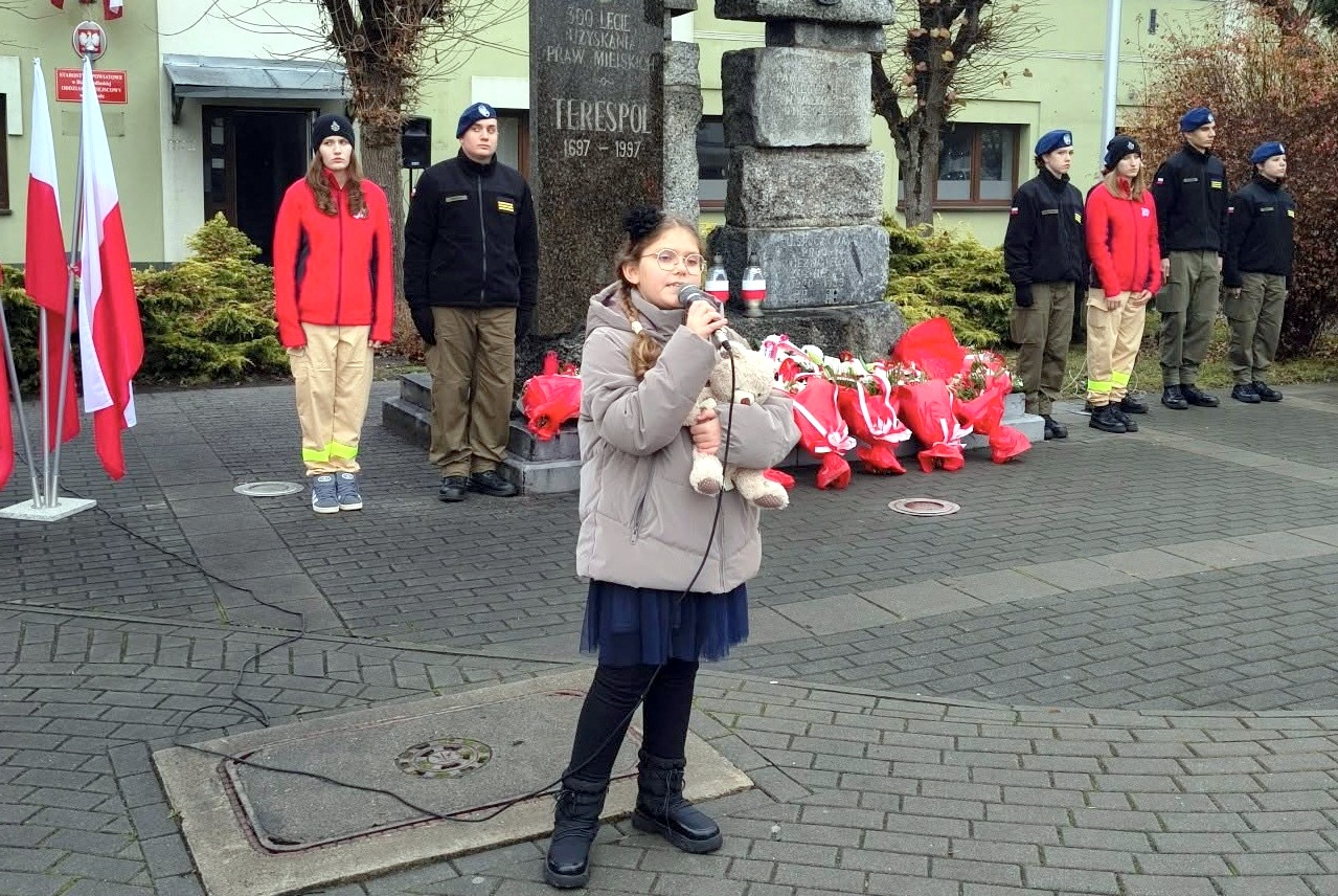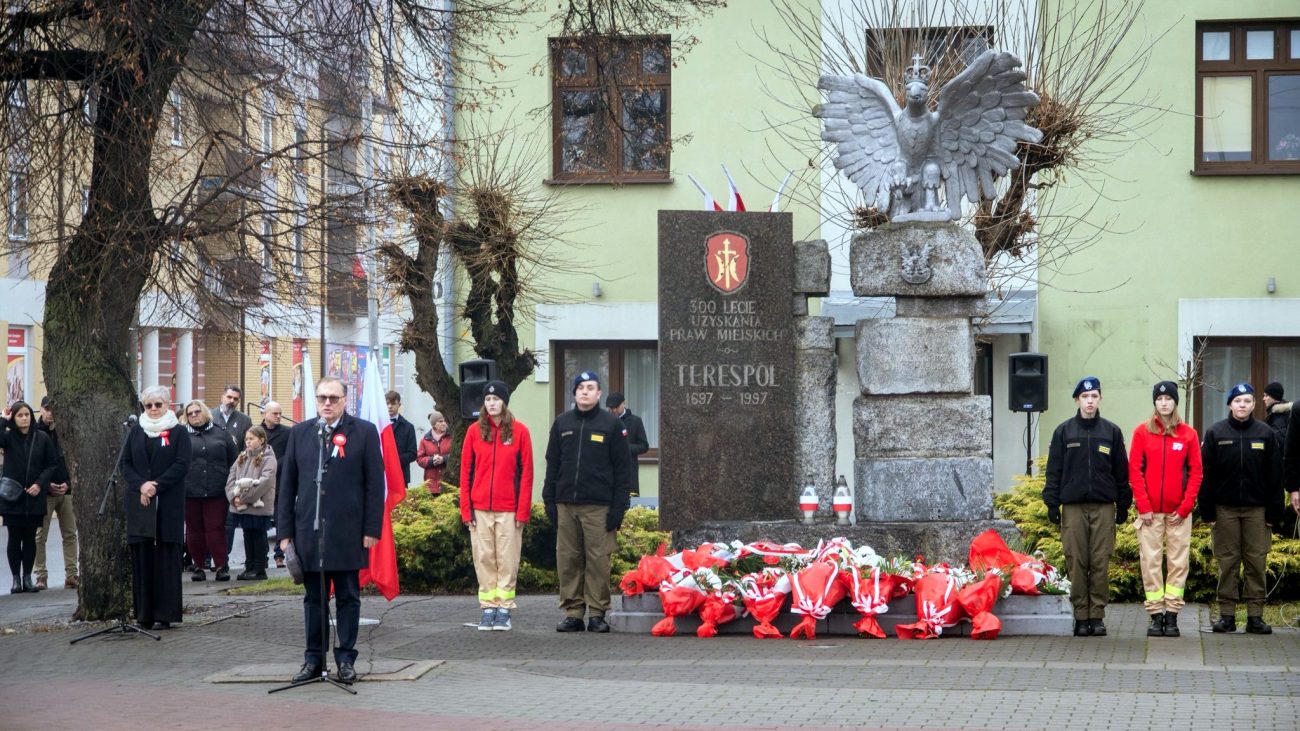 Poczet flagowy i asystę przy pomniku zabezpieczali kadeci oddziałów przygotowania wojskowego Akademickiego Liceum Ogólnokształcącego w Terespolu. Asystę pełniły także członkinie Młodzieżowej Drużyny Pożarniczej OSP w Terespolu. Poczty sztandarowe wystawili strażacy z OSP KSRG w Terespolu oraz uczniowie z Zespołu Szkół Publicznych nr 1 w Terespolu i Akademickiego Liceum Ogólnokształcącego w Terespolu. Do licznie zebranych mieszkańców przemówili senator RP Grzegorz Bierecki oraz burmistrz miasta Jacek Danieluk. Obydwaj potwierdzili, jak ważna jest pamięć o wydarzeniach prowadzących do odzyskania przez Polskę wolności, i podziękowali wszystkim za przybycie oraz wspólną celebrację rocznicy.