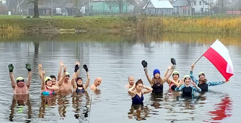 Niepodległość świętowali także członkowie Terespolskiego Klubu Morsów! Kilkanaście osób weszło do zbiornika wodnego na terenie rekreacyjnym Konowica.