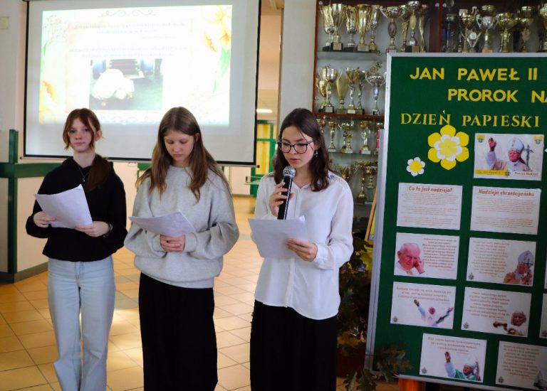 Wydarzenie rozpoczęła dyrektor szkoły Teresa Kusiak, która w swoim wystąpieniu przypomniała najważniejsze momenty z życia Karola Wojtyły oraz znaczenie głoszonych przez niego nauk we współczesnym świecie.