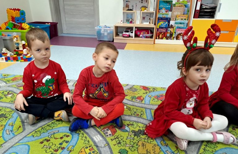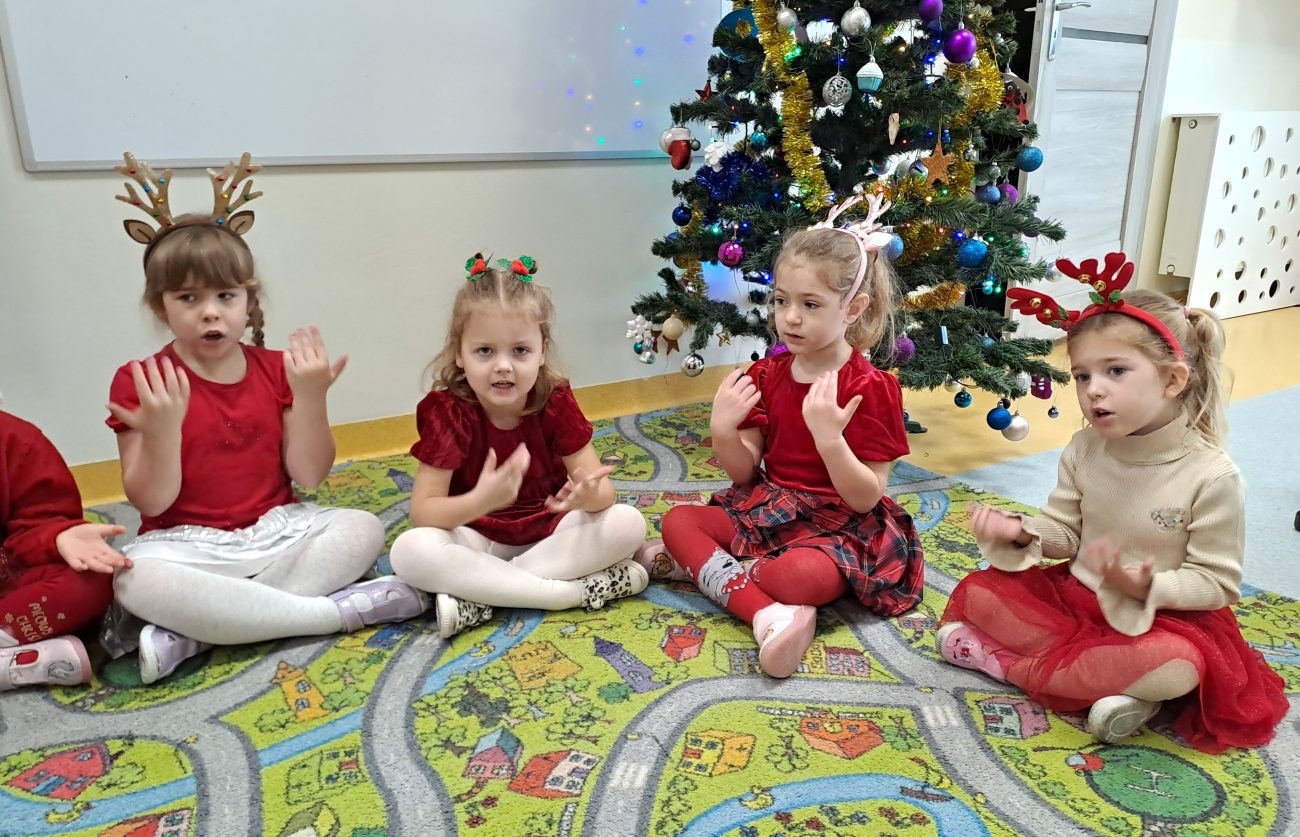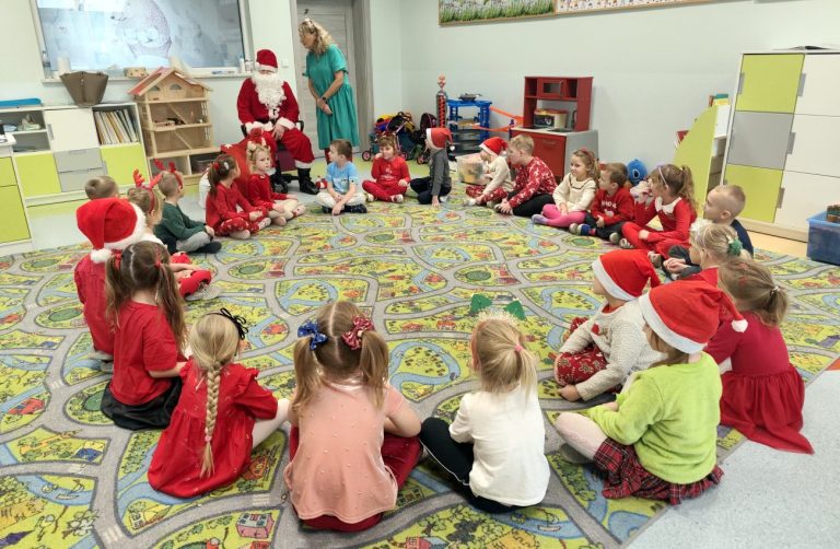 Przedszkolaki nie pozostały dłużne. Każda grupa przygotowała dla Mikołaja specjalną niespodziankę – wierszyk lub piosenkę. Dzieci z ogromnym zaangażowaniem prezentowały swoje występy, a Mikołaj z podziwem i wzruszeniem słuchał małych artystów.