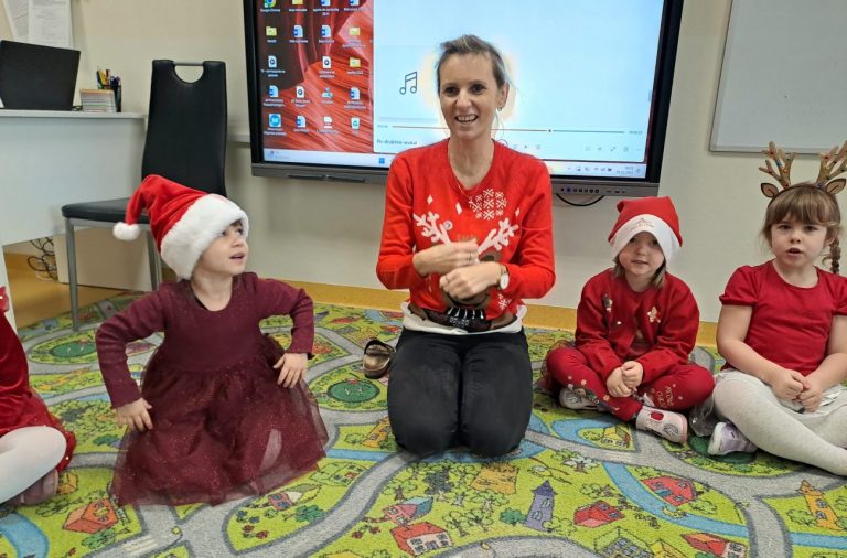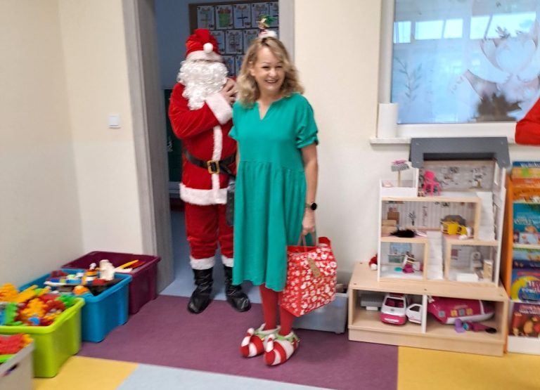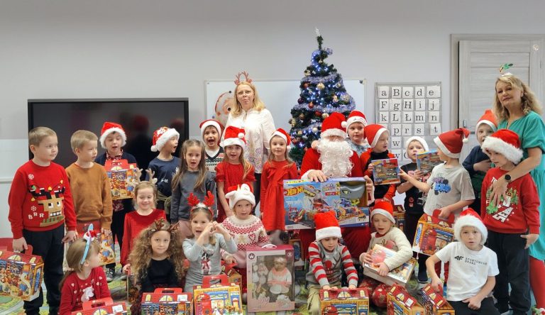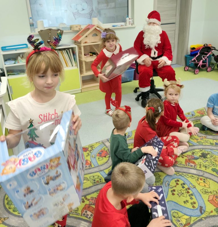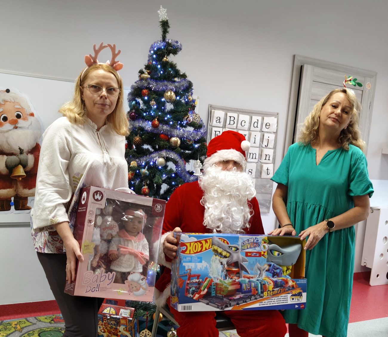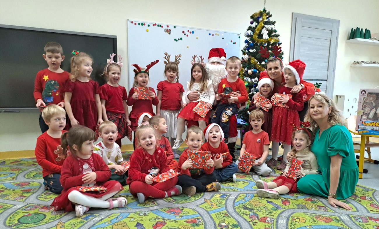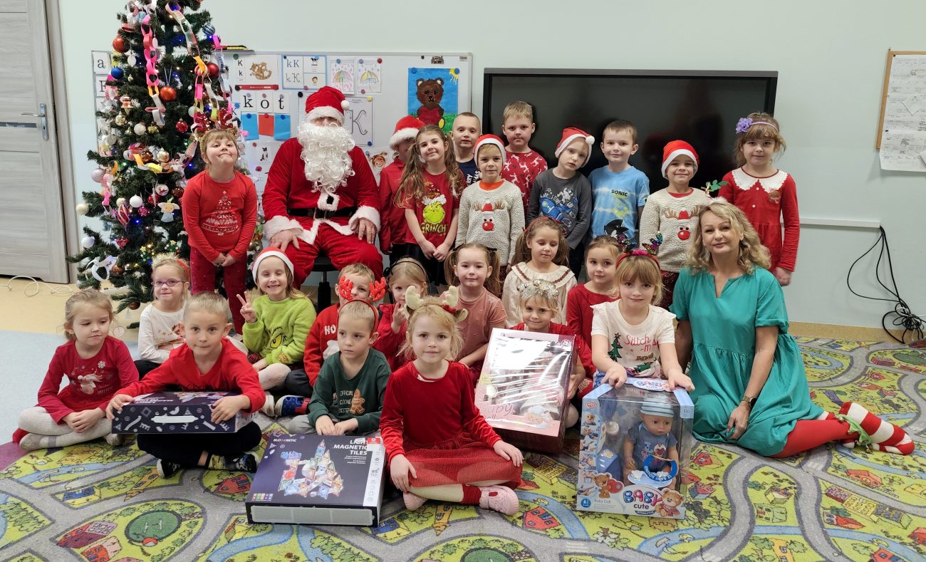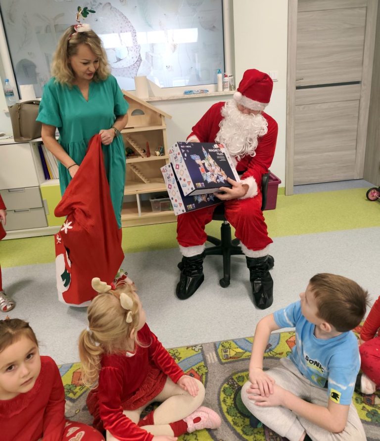 Tym razem Mikołaj miał wsparcie Elfa pomocnika, w którego z radością wcieliła się dyrektor Edyta Stalewska. Razem odwiedzili wszystkie grupy przedszkolne, dzieląc się uśmiechem, ciepłym słowem i oczywiście… wymarzonymi prezentami.