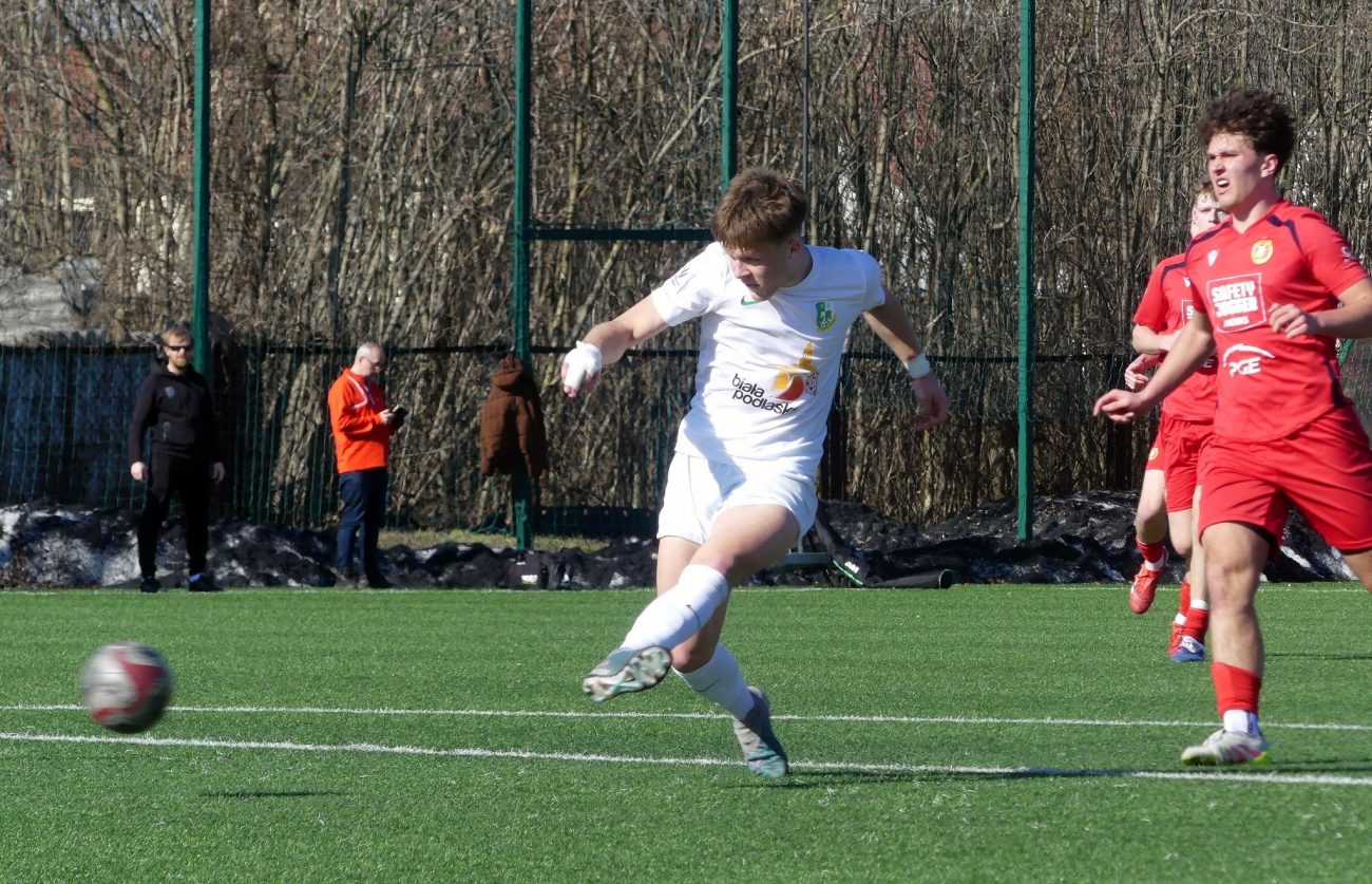 Po porażce 1:3 z liderem wschodniej grupy Centralnej Ligi Juniorów Młodszych, czyli warszawską Legią, Podlasie zmierzyło się u siebie z zajmującym drugie miejsce Widzewem Łódź. Podopieczni trenera Miłosza Storto sprawili w tym meczu dużą niespodziankę, pokonując wicelidera 2:1.