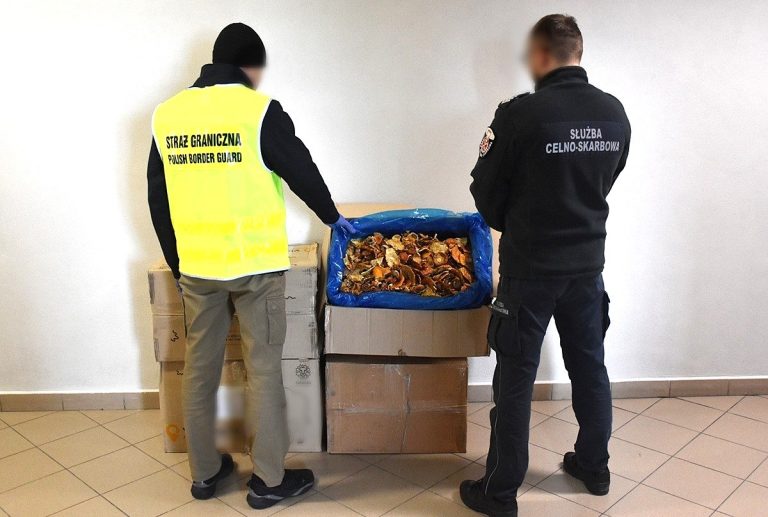 Podczas szczegółowej kontroli funkcjonariusze znaleźli 4 pudła, w których znajdowały się suszone czerwone muchomory. Zatrzymany towar, o wadze ponad 34 kg, był nadany jako pocztowa przesyłka z Ukrainy, która miała trafić do Łotwy.