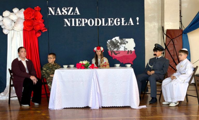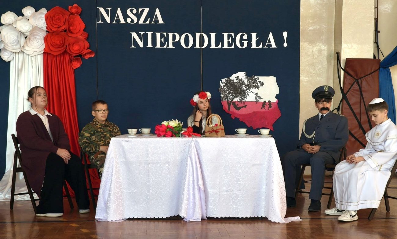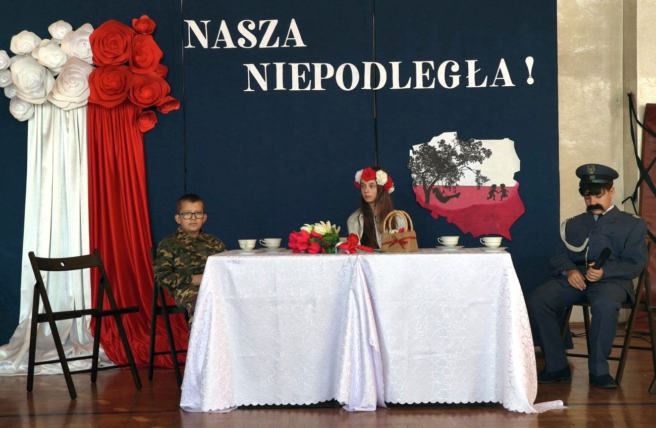 W dalszej części apelu uczniowie przygotowali krótką inscenizację, w której niepodległa Polska – symbolicznie przedstawiona przez jedną z uczennic (Marię Bajkowską z kl. VI) – rozmawiała z wybitnymi postaciami naszej historii i kultury. Na scenie pojawili się: Józef Piłsudski – Kajetan Jaroszewicz, Witold Pilecki – Miłosz Denisiuk, Jan Paweł II – Szymon Stawinoga, Wisława Szymborska – Nikola Karwanecka. Każda z postaci przypominała, że wolność nie jest dana raz na zawsze – trzeba o nią dbać. Trzeba też troszczyć się o Ojczyznę i być z niej dumnym.