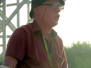 Stanisław Kulgawczuk na trybunie bialskiego stadionu w czasie meczu Podlasie – KSZO w 2016 r. (fot. Adam Trochimiuk)