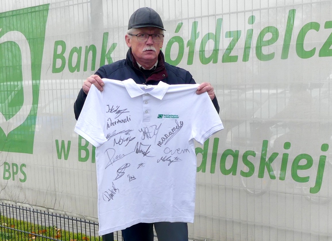 Zatem koszulka z autografami, jaką pan otrzymał w przerwie meczu Podlasia ze Spartą Kazimierza Wielka za udział w konkursie bialskiego Banku Spółdzielczego, jest już czwartą od bialskiego klubu.