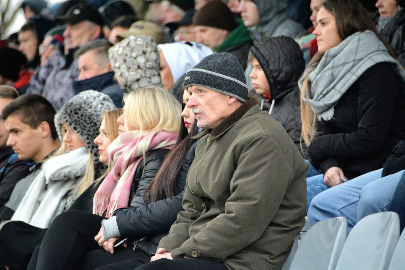 Stanisław Kulgawczuk na trybunie bialskiego stadionu w czasie meczu Podlasie – KSZO w 2016 r. (fot. Adam Trochimiuk)